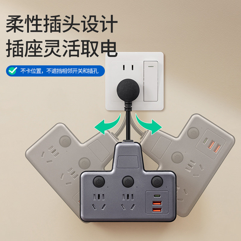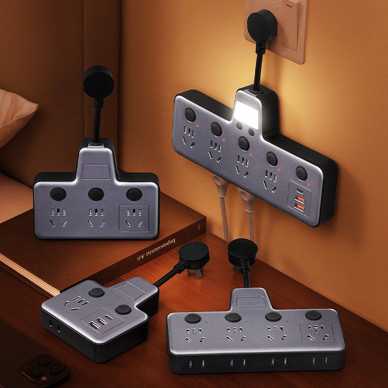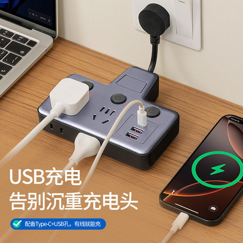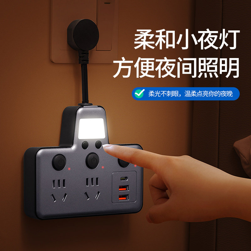 纯铜多功能插座转换器USB独立开关一转多孔排插带夜灯插头接线板