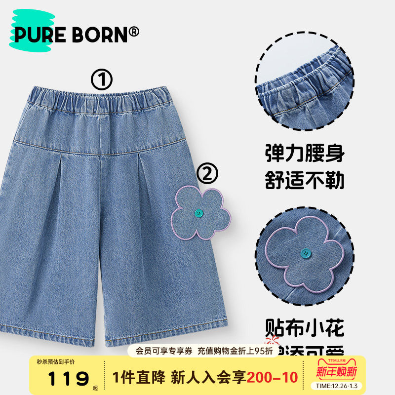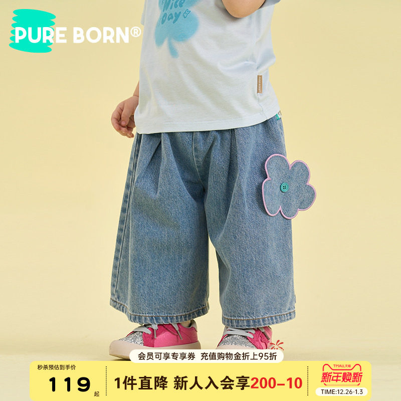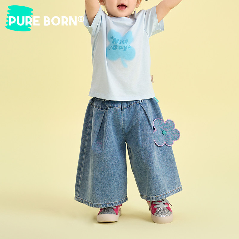 【商场同款】博睿恩儿童牛仔裤2025春秋新款女宝百搭阔腿牛仔长裤
