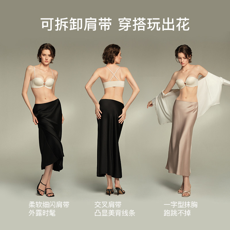 润微提拉内衣女大胸显小无痕防下垂收副乳胸罩爆款隐形粉底液文胸