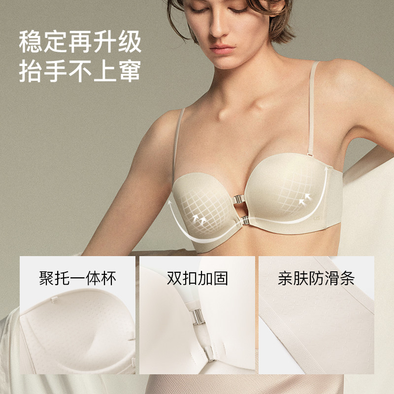ubras前扣内衣女小胸聚拢显大光面无痕舒适防滑抹胸美背文胸罩