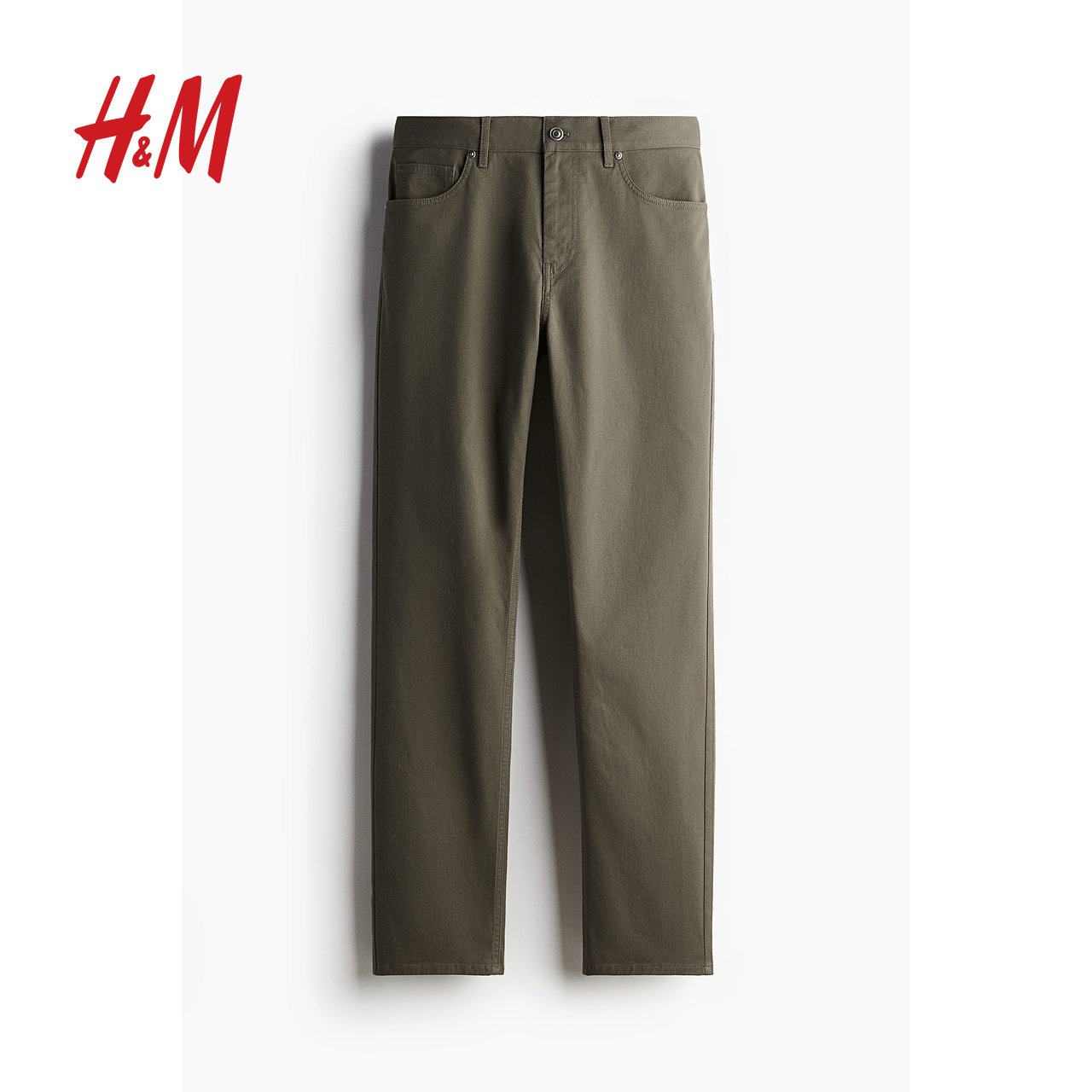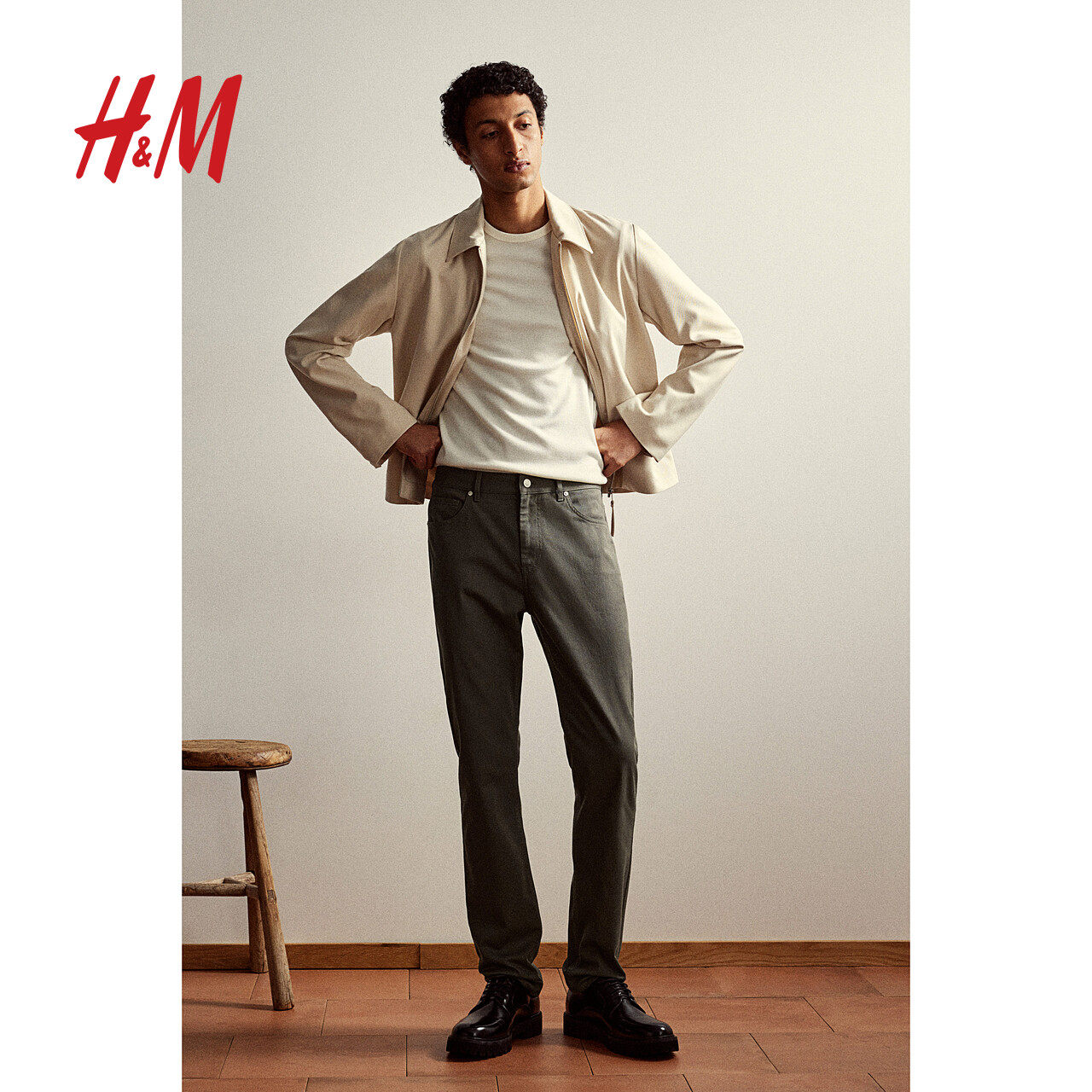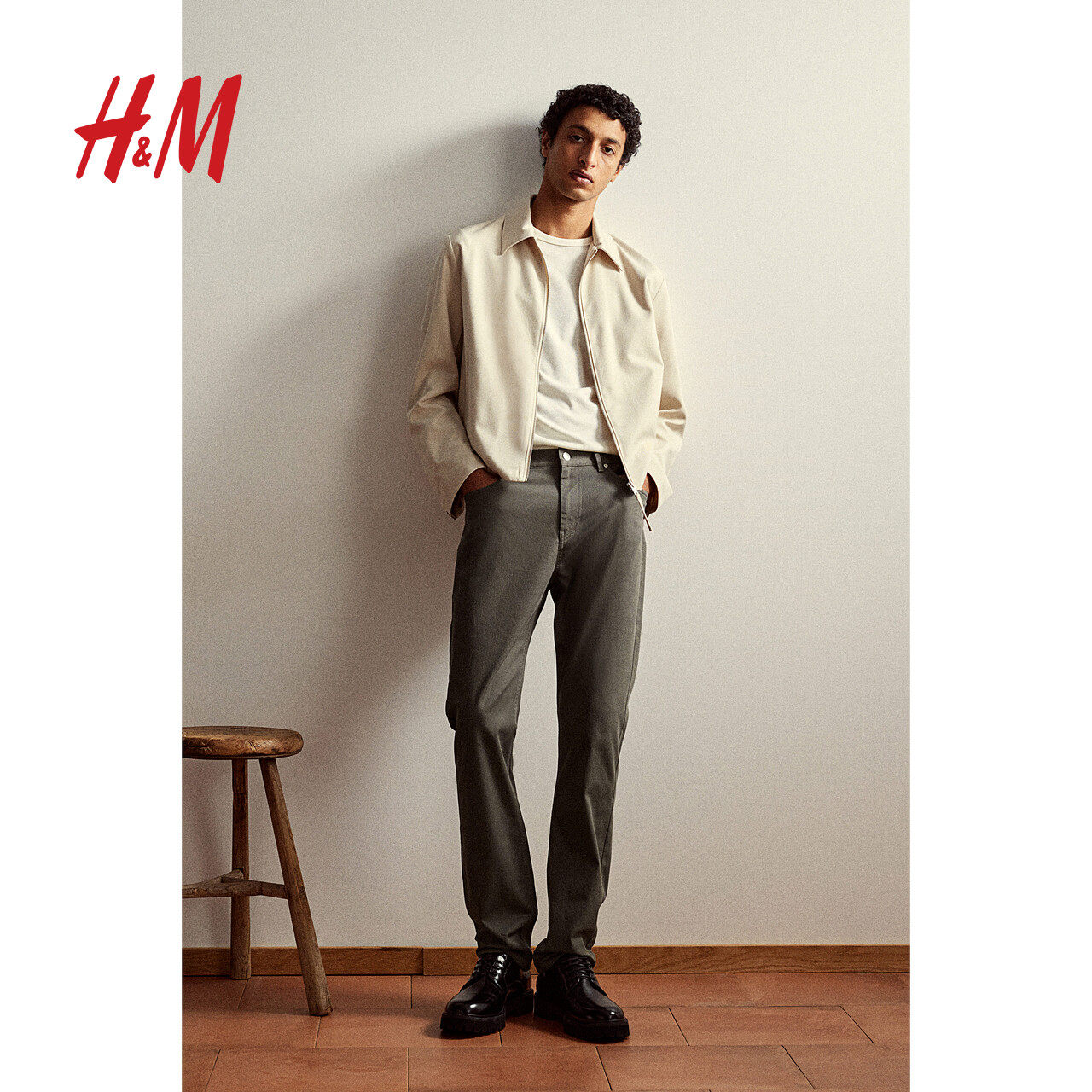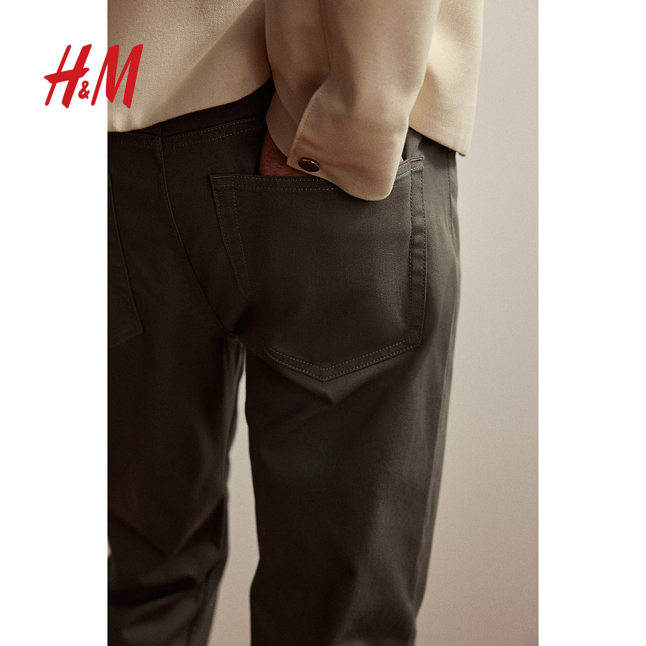 HM男装休闲裤冬季通勤斜纹棉布简约英伦风休闲合身长裤1074402