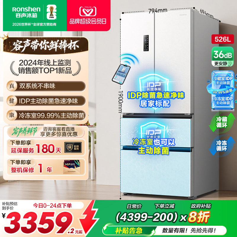 容声526L双净法式多门双开四门双系统循环无霜一级大容量家用冰箱