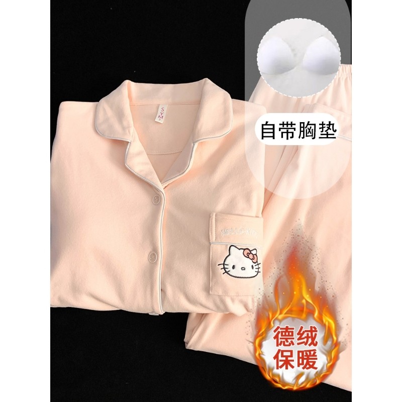红豆HelloKitty德绒睡衣女秋冬季双面磨毛加绒加厚长袖少女家居服