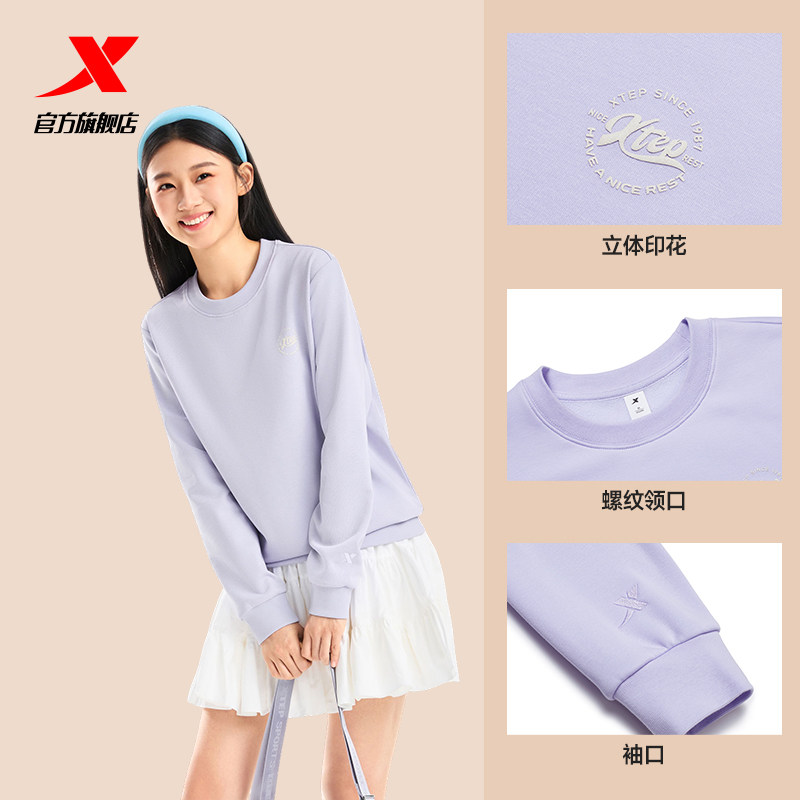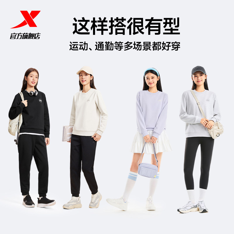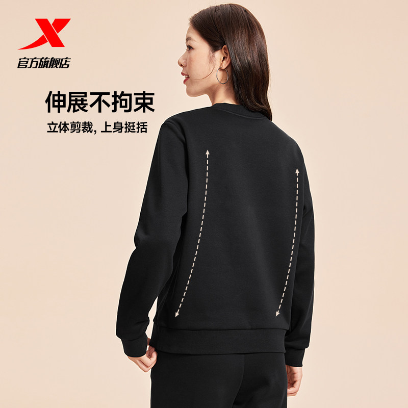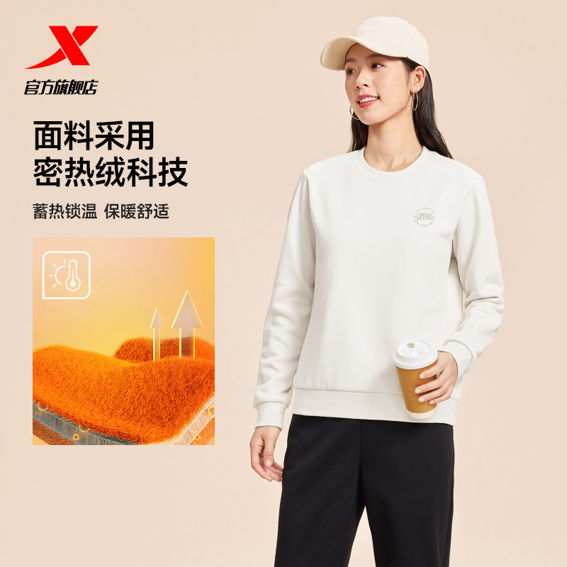 特步加绒卫衣女款2025年秋季新款圆领套头保暖长袖上衣健身运动服