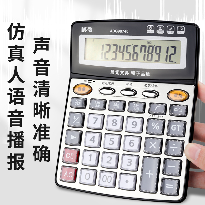 晨光语音款计算器办公财务会计太阳能专用计算器学生用真人发音大号按键大屏幕计算机器用办公商务桌面型便携