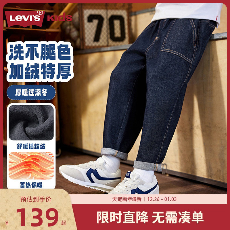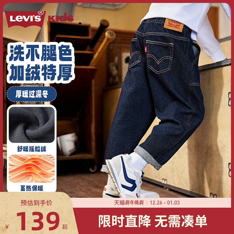 【加绒】李维斯儿童装男童裤子原牛软牛仔裤2025秋冬新款女童长裤