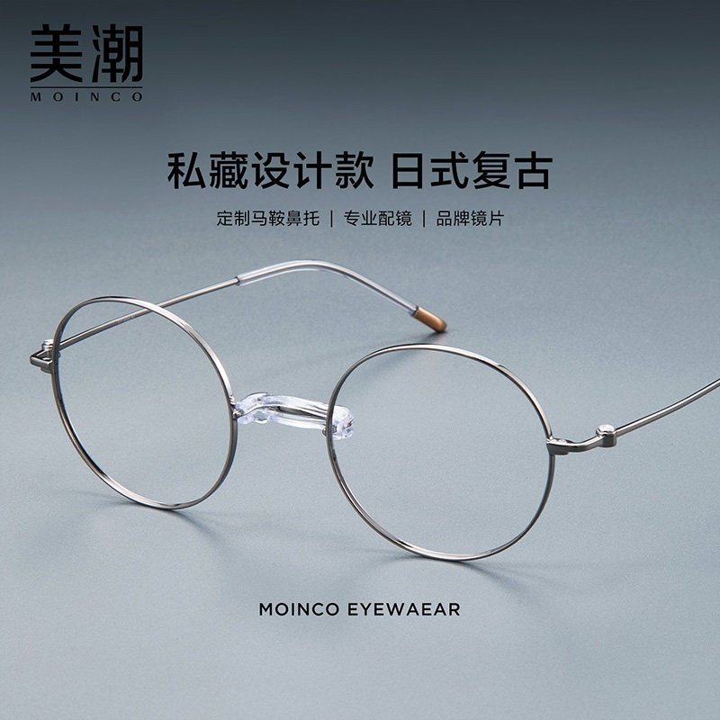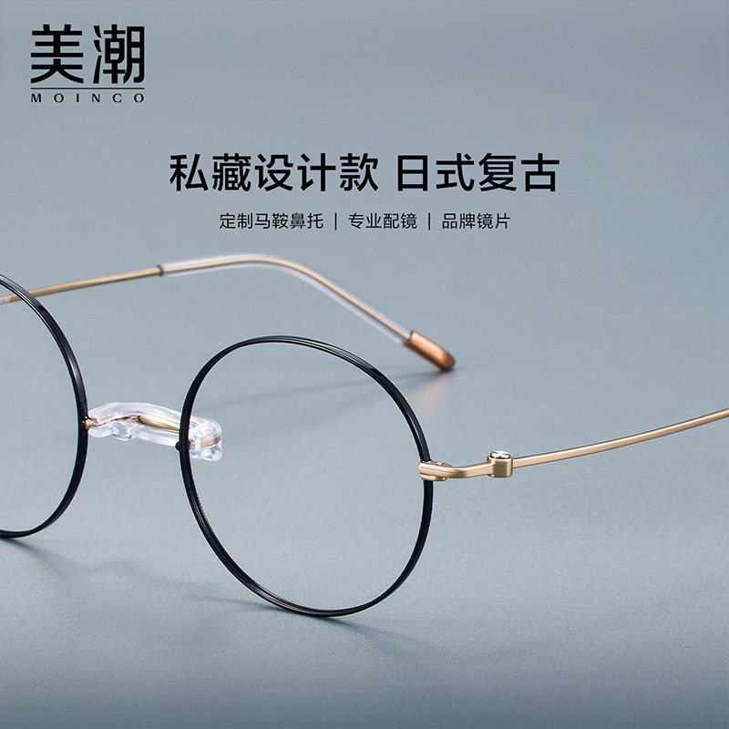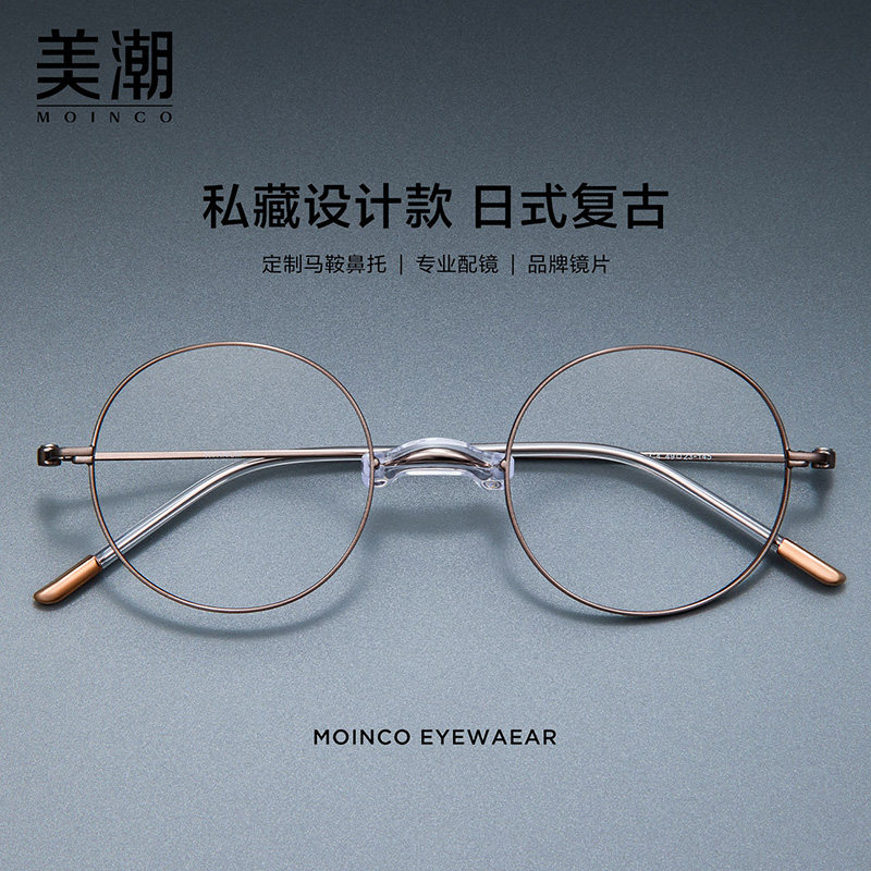 日系设计师款近视眼镜男款可配度数文艺复古小圆框超轻纯钛眼睛架