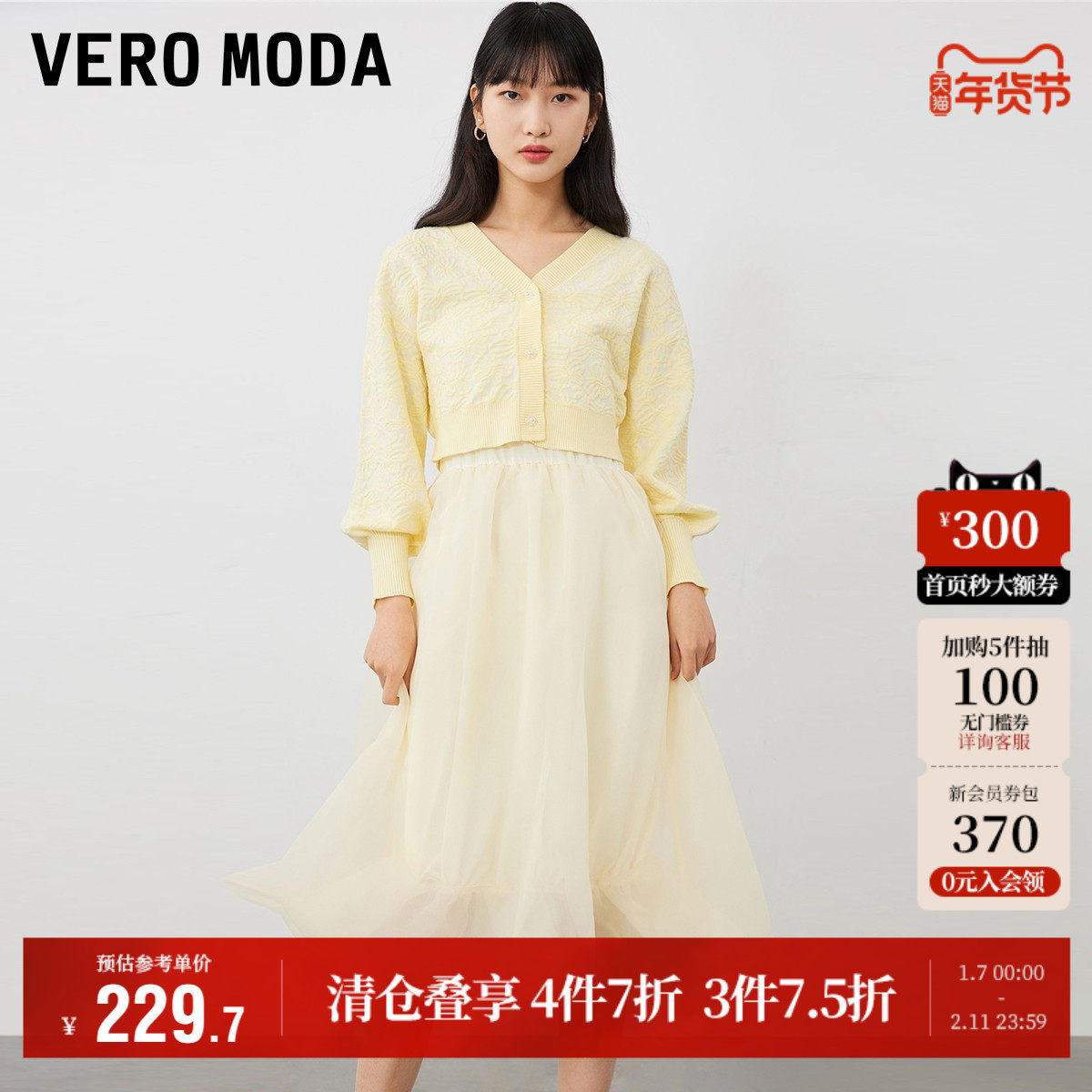 Vero Moda奥莱连衣裙秋季新款甜美纱裙针织衫两件套公主裙子流行