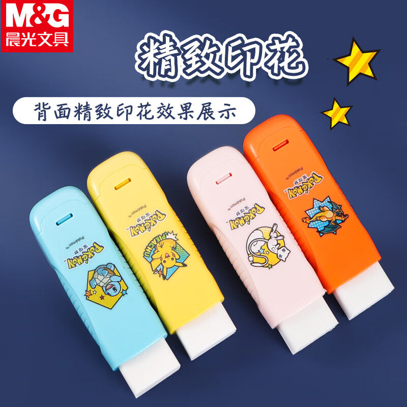 晨光推动橡皮擦宝可梦皮卡丘限定可爱彩色推拉式橡皮小学生专用不易留痕少屑擦字成线干净儿童美术绘画Q4212