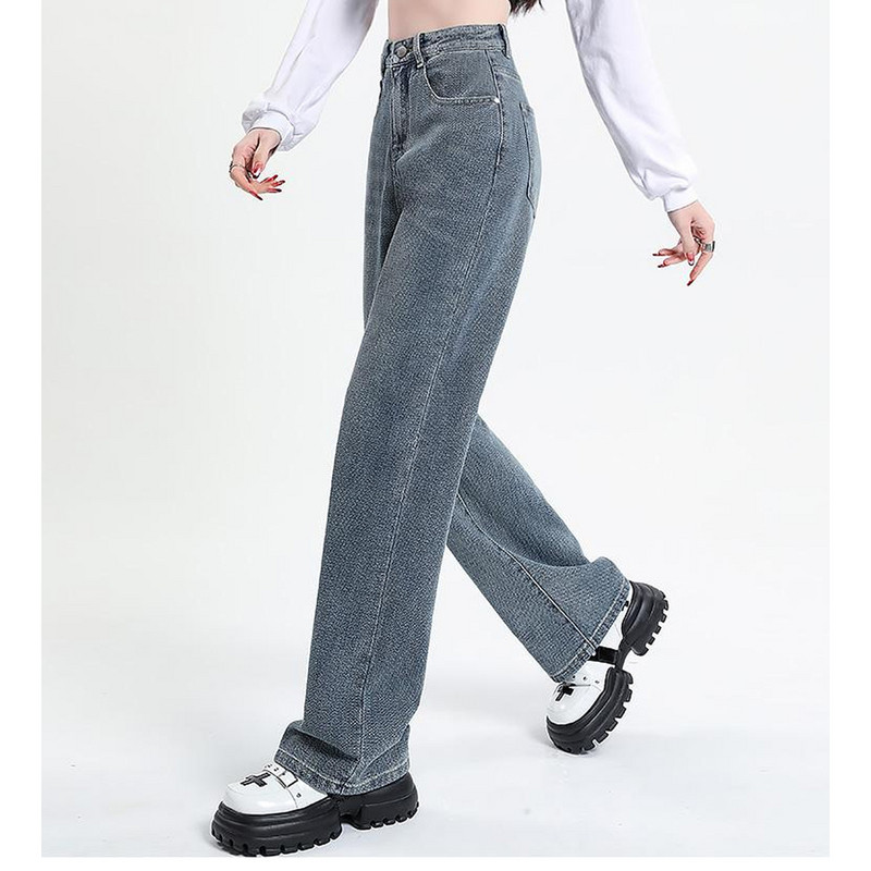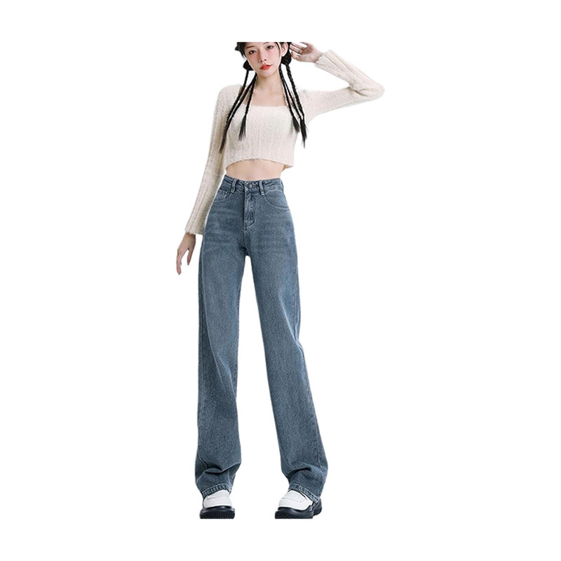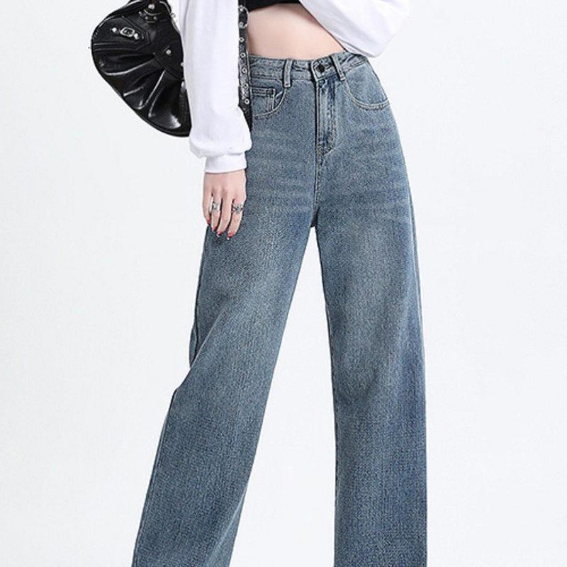 四面弹丹宁色牛仔阔腿裤25年新款宽松显瘦牛仔长裤89173