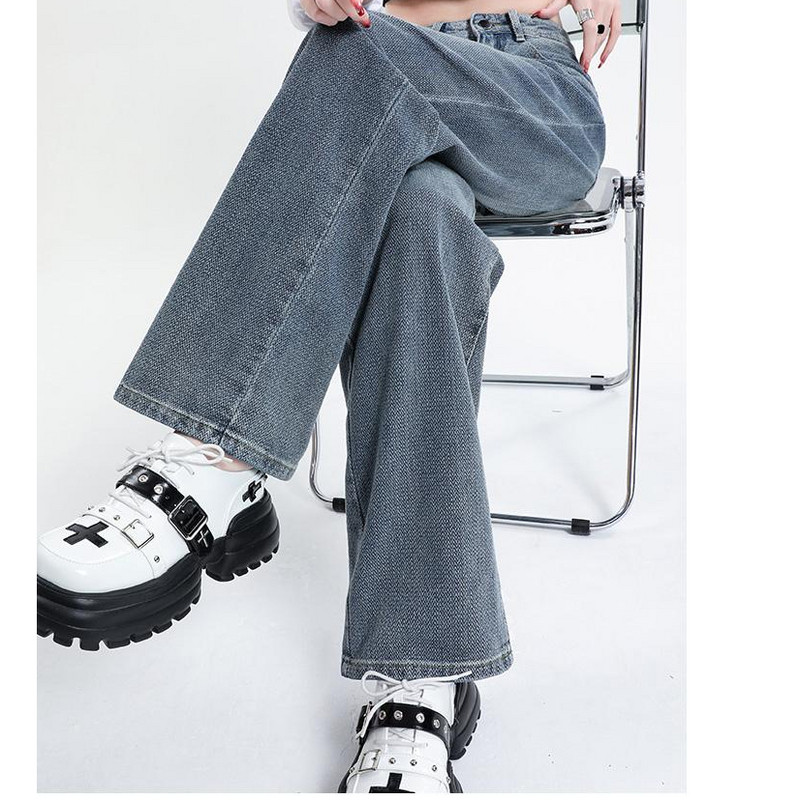 王家有鱼【古早蓝灰】2025秋季新款微喇牛仔裤中高腰不贴腿辣妹女