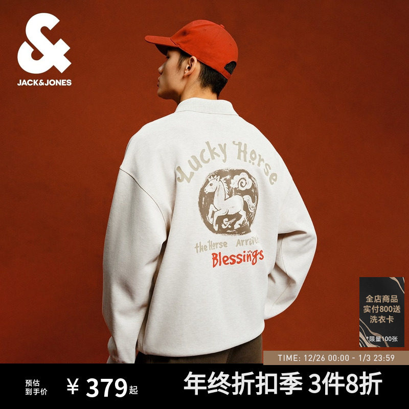 【马年新年款】杰克琼斯男装红色POLO领水洗卫衣男刺绣宽松本命年