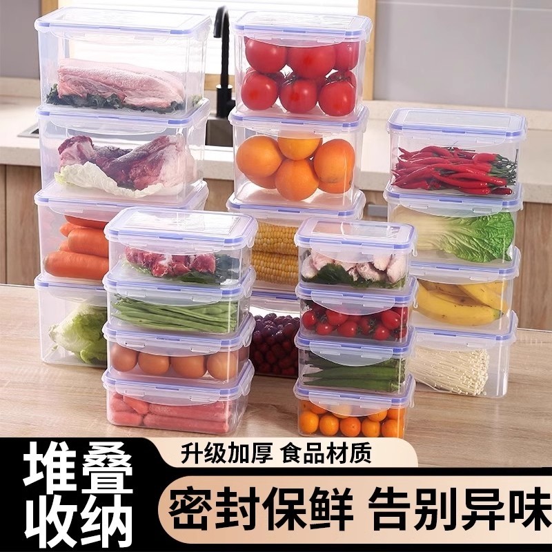 商用加厚保鲜盒长方形塑料收纳盒冰箱专用食品储物盒密封冷冻盒子