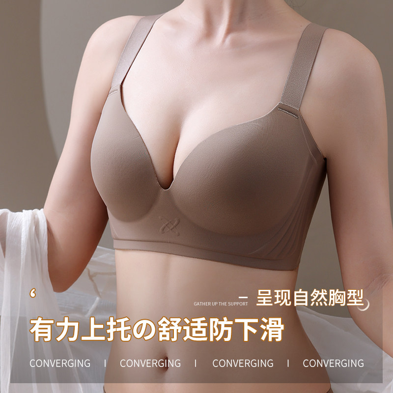 润微提拉女王内衣女大胸显小无痕大码调整防下垂收副乳粉底液文胸