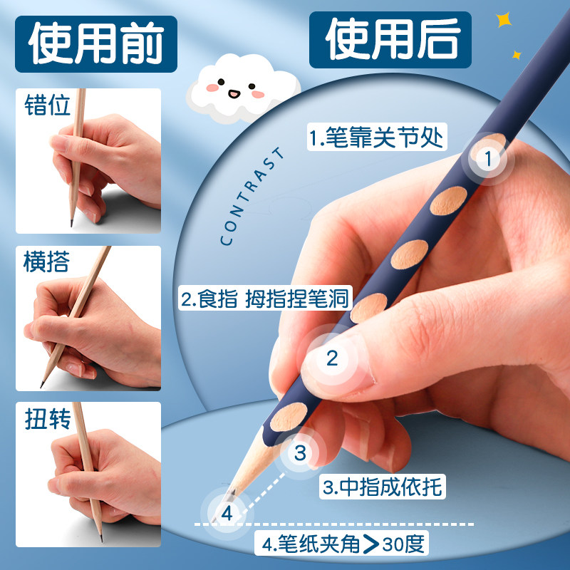洞洞铅笔小学生专用正姿铅笔幼儿园控笔训练HB原木铅笔儿童写字练字2B三角杆铅笔初学者用顺滑流畅不易断铅笔