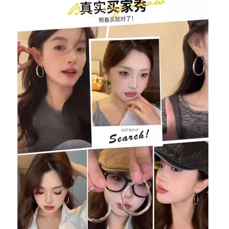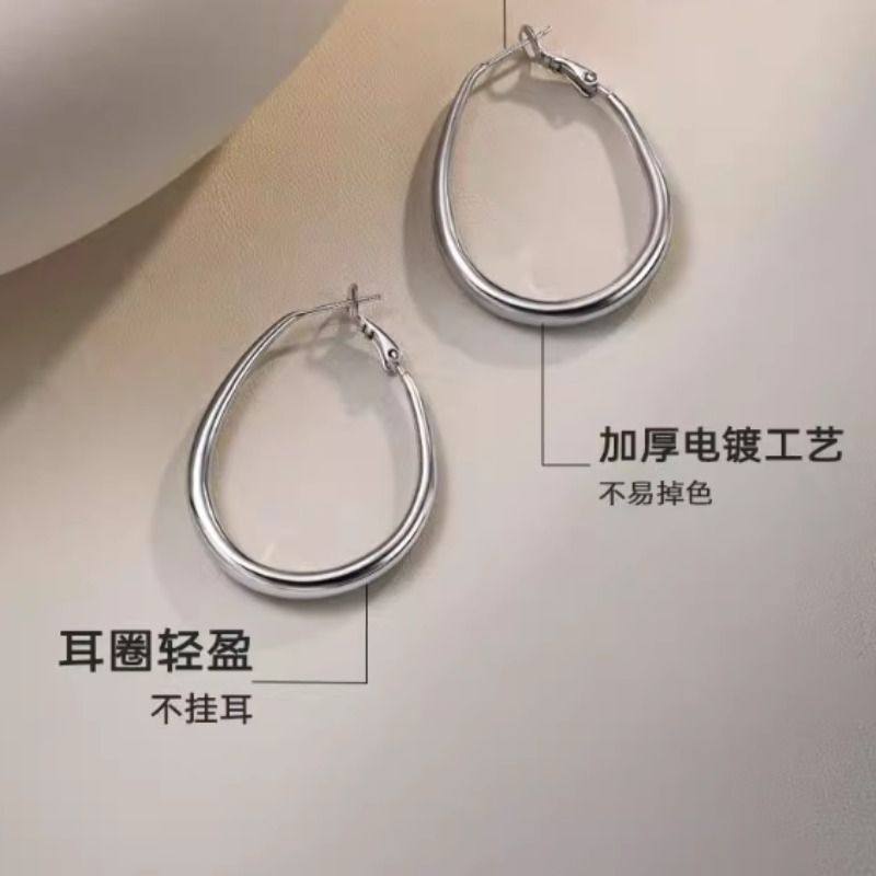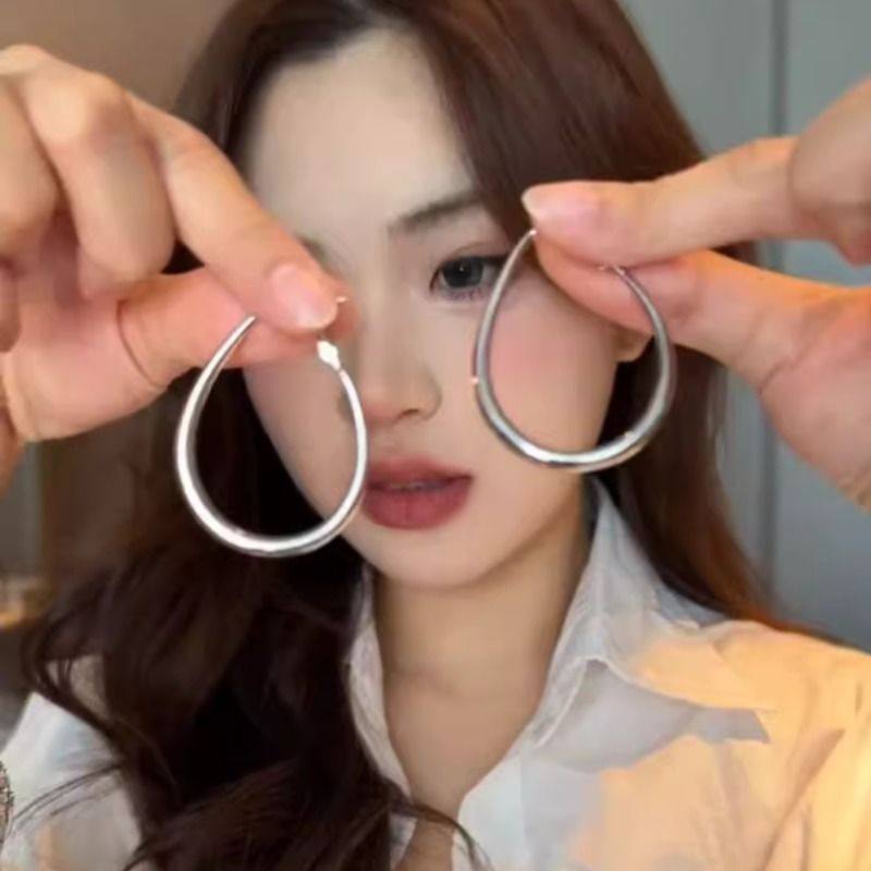 欧美法式夸张大圈圈耳环高级感耳圈银色耳饰2025新款爆款耳扣耳钉