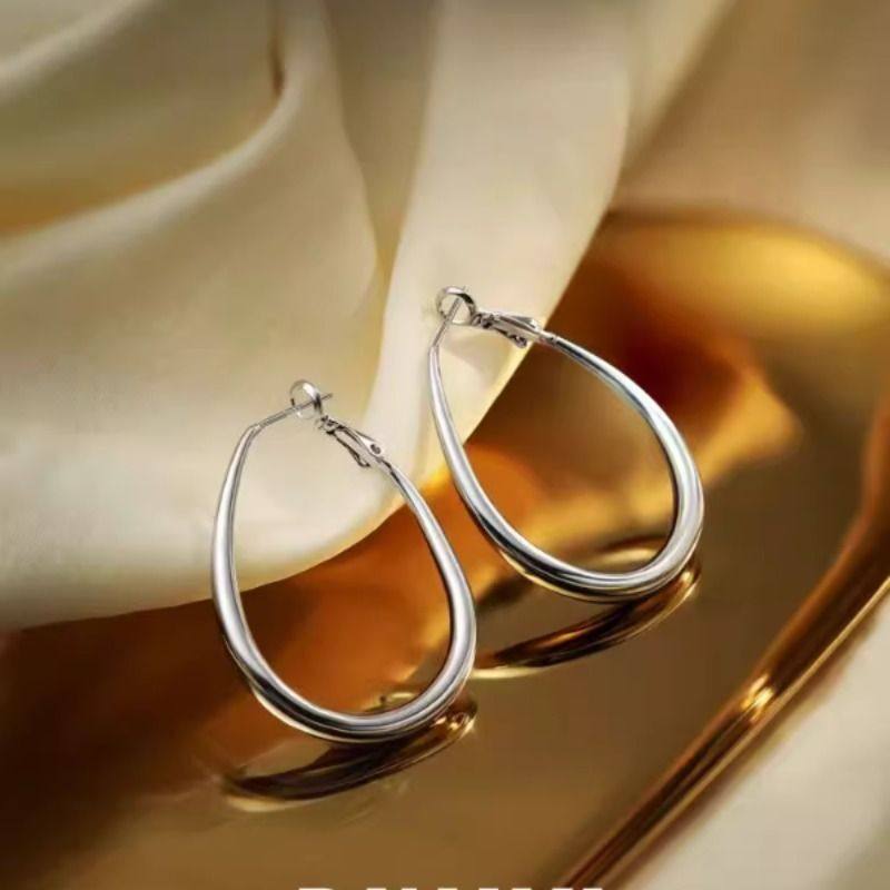 银色简约高级感素圈耳环女2025新款耳圈气质耳饰轻奢耳钉圈圈耳扣