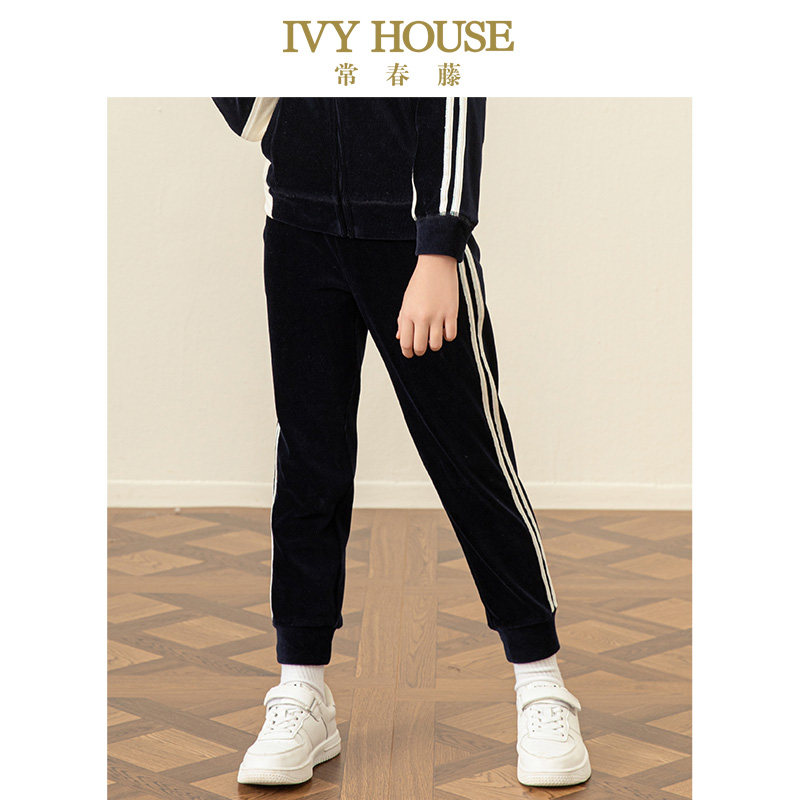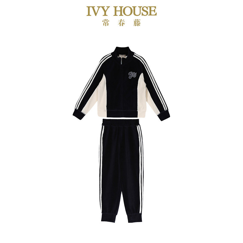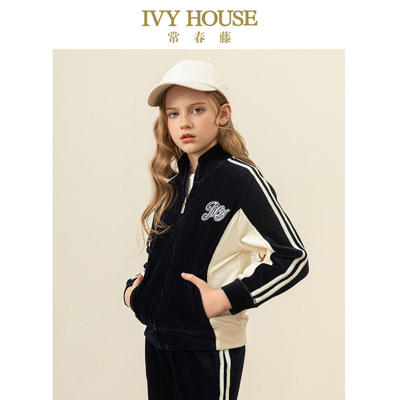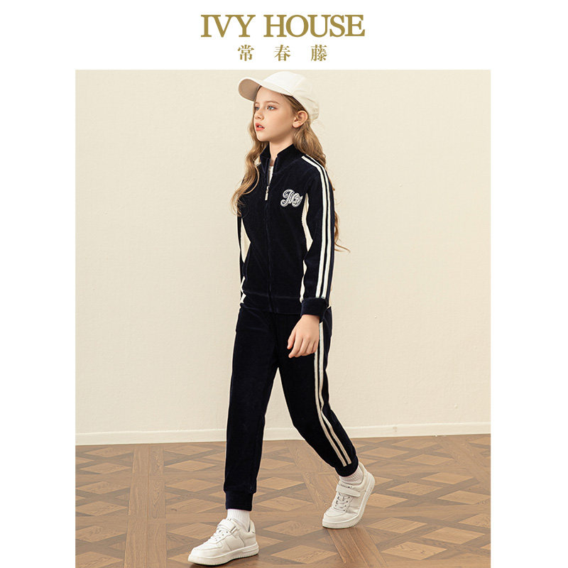 IVY HOUSE常春藤童装女童秋季新款 复古丝绒运动外套套装学院亲子