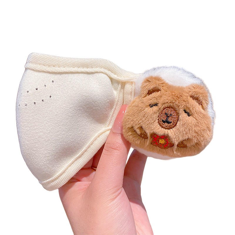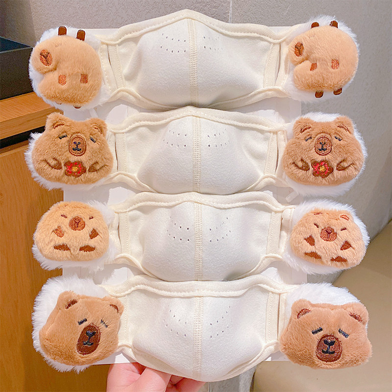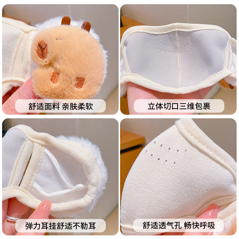 卡皮巴拉儿童保暖口罩防风护耳一体面罩加厚加绒透气卡通防寒耳套