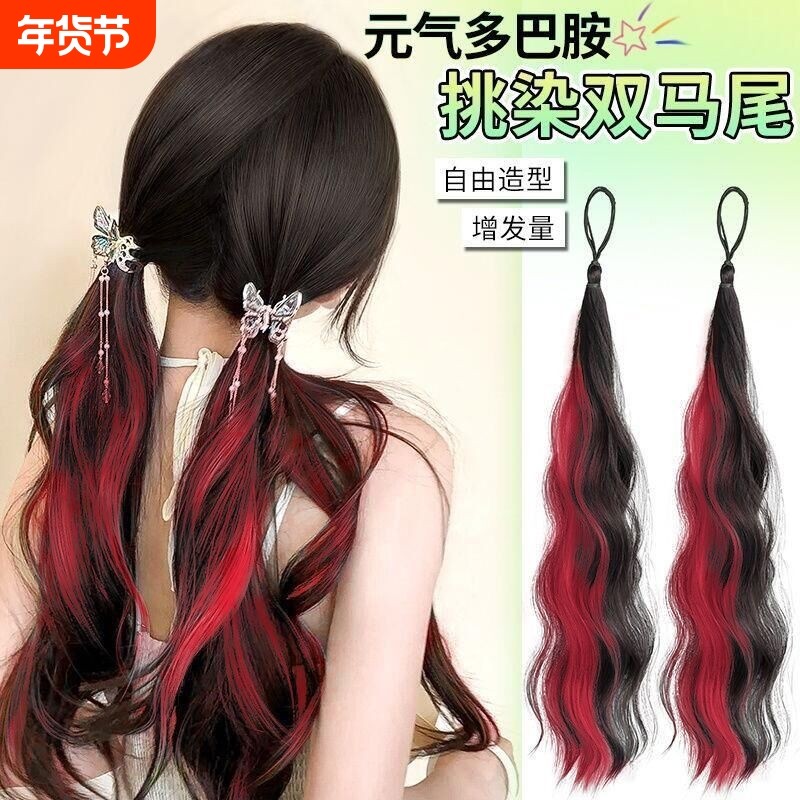 假发辫子马尾挑染长发束绑带低扎双马尾量假马尾多巴胺发型染发