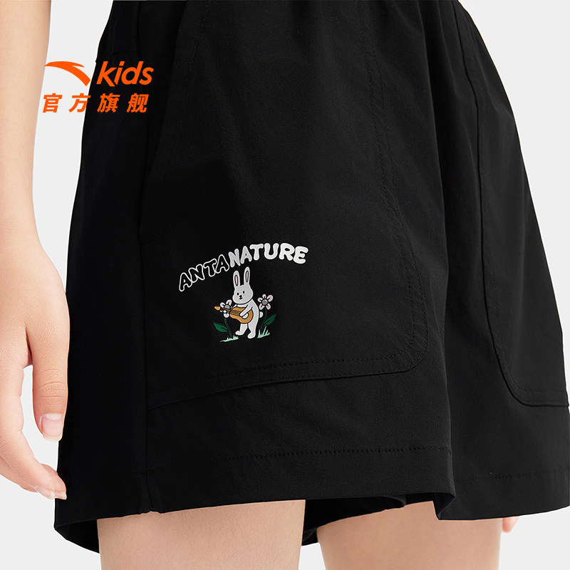 安踏儿童短裤女大童裙裤2025夏新款大童弹力半身裙黑色运动短裙女