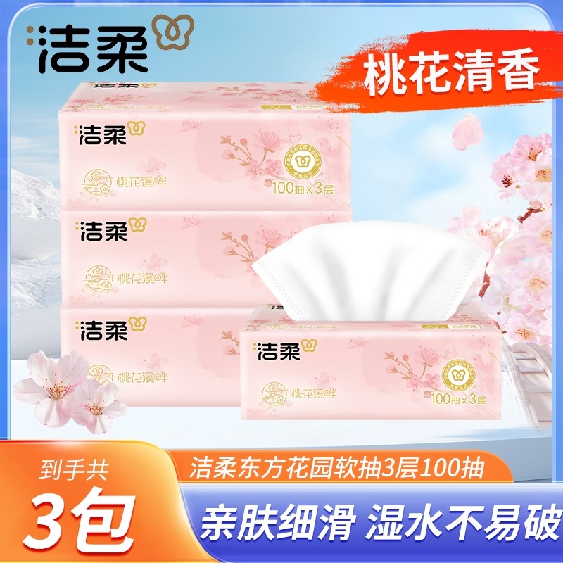 洁柔桃花香抽纸3层100抽花香纸巾可湿水面巾纸家用餐巾纸卫生纸