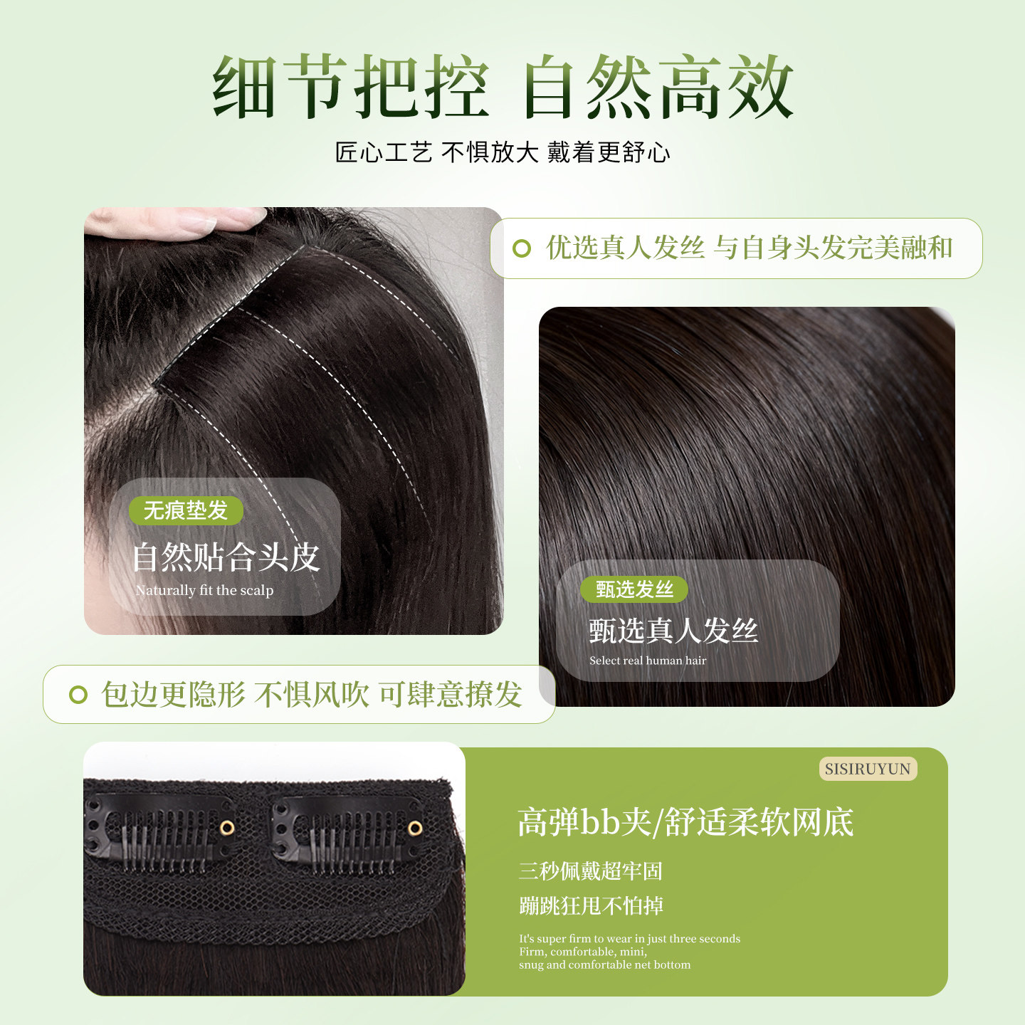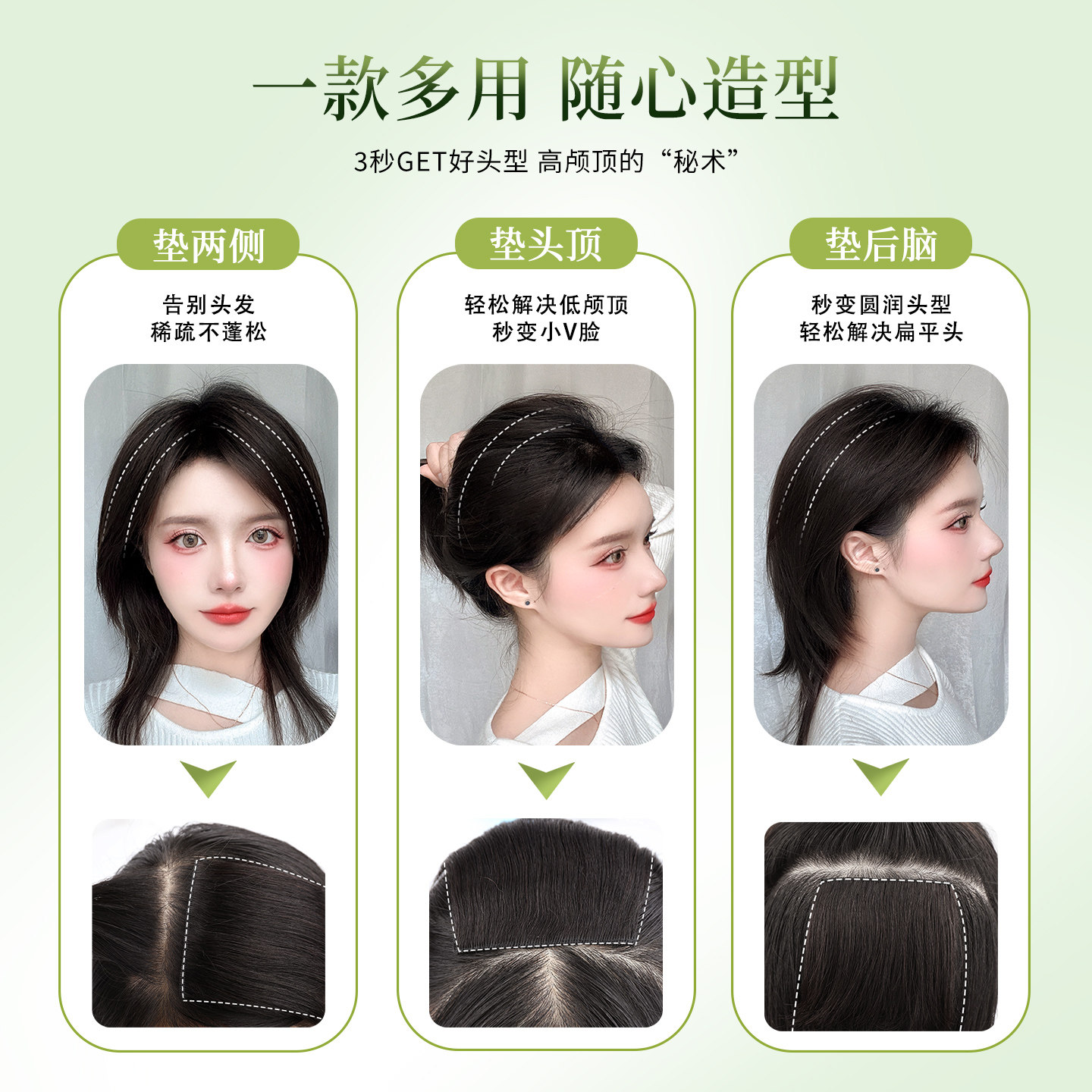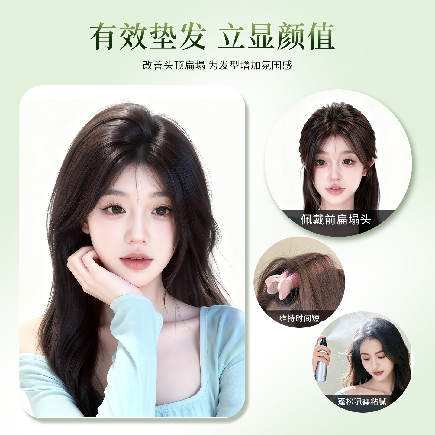 假发女片头顶补发蓬松增发量垫发片垫发根隐形无痕真发高颅顶神器