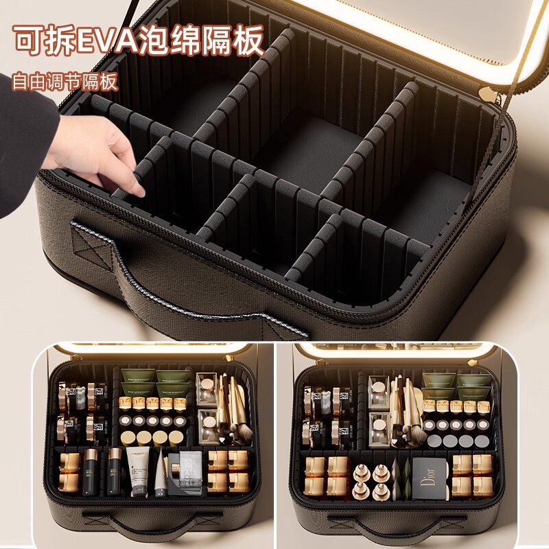 化妆女大容量2026新款便携分区刷护肤品洗漱收纳包带镜子LED手提