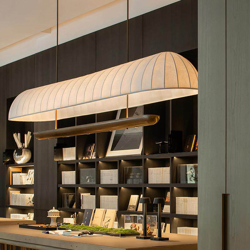 日式餐厅吊灯酒店餐饮中式复古吧台茶室书房餐桌长条布艺装饰灯具