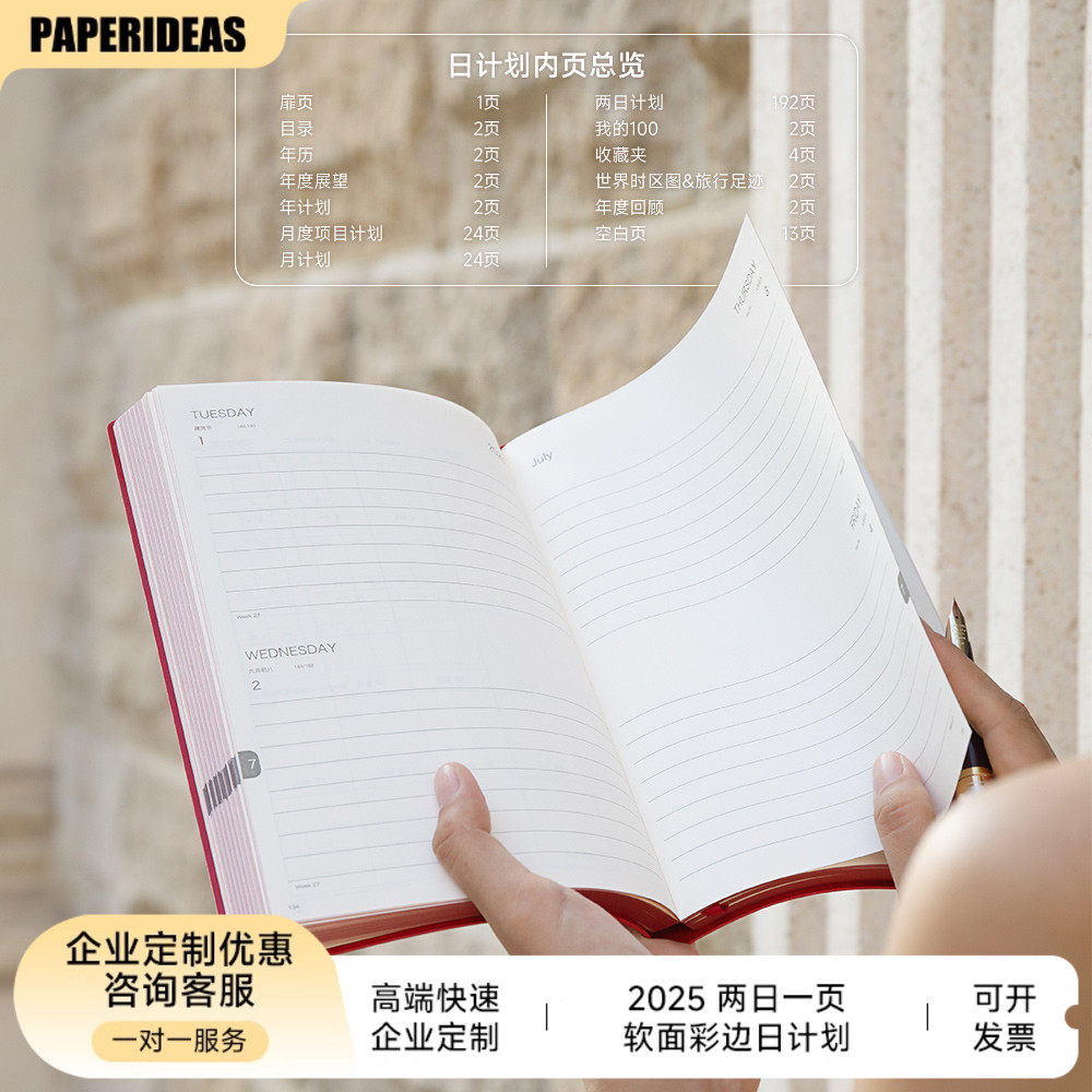 两天一页日程本手帐本2025软面彩边2两日一页手帐横线计划本规划日记本效率手册手账本A5笔记本本子企业定制