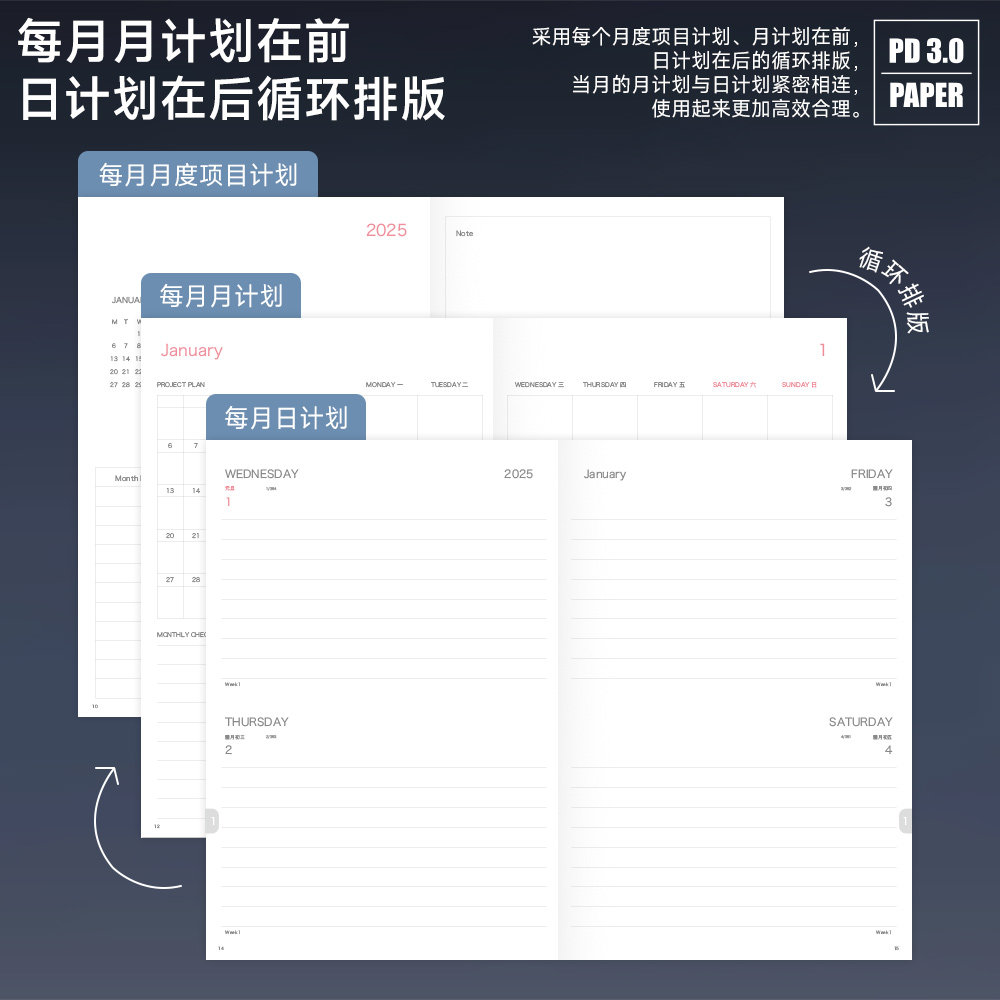 2026年日程本新款计划表365天每日时间管理效率手册大学生日历自律打卡本高颜值记事本文艺精致手账笔记本子