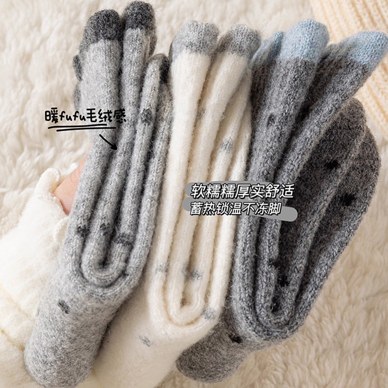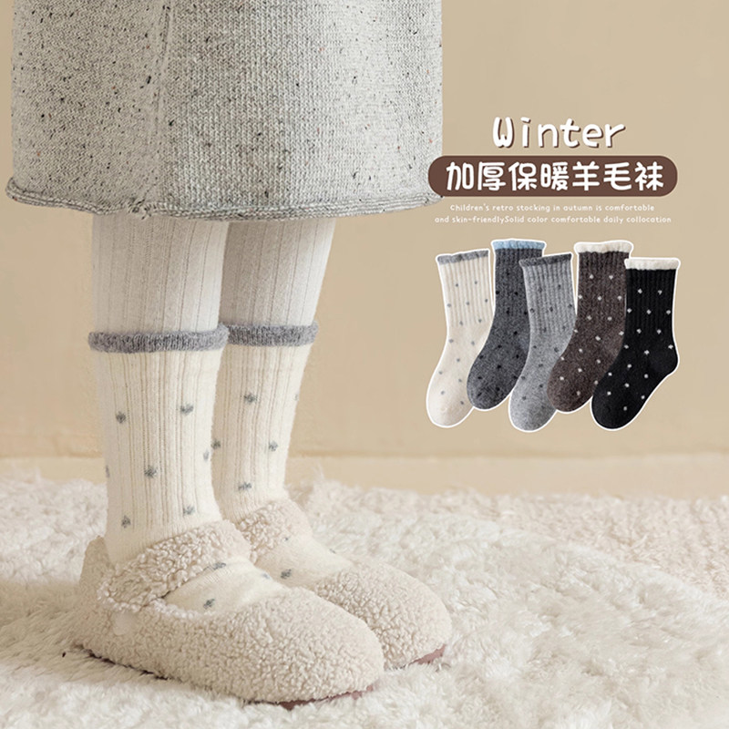 女童袜子秋冬季加厚羊毛袜儿童韩版波点冬天羊绒保暖新款中筒袜