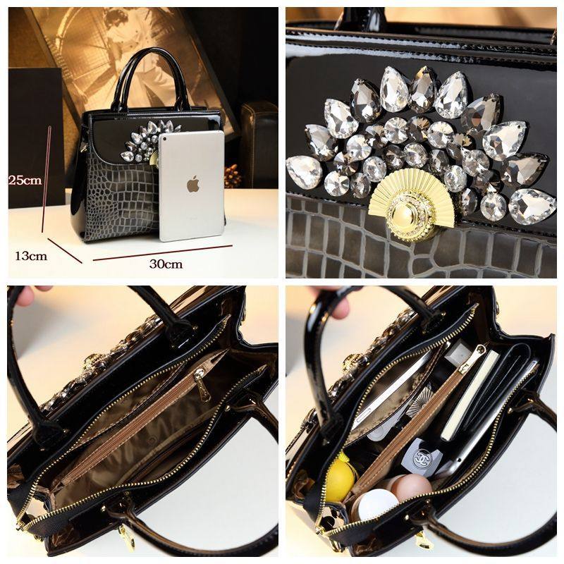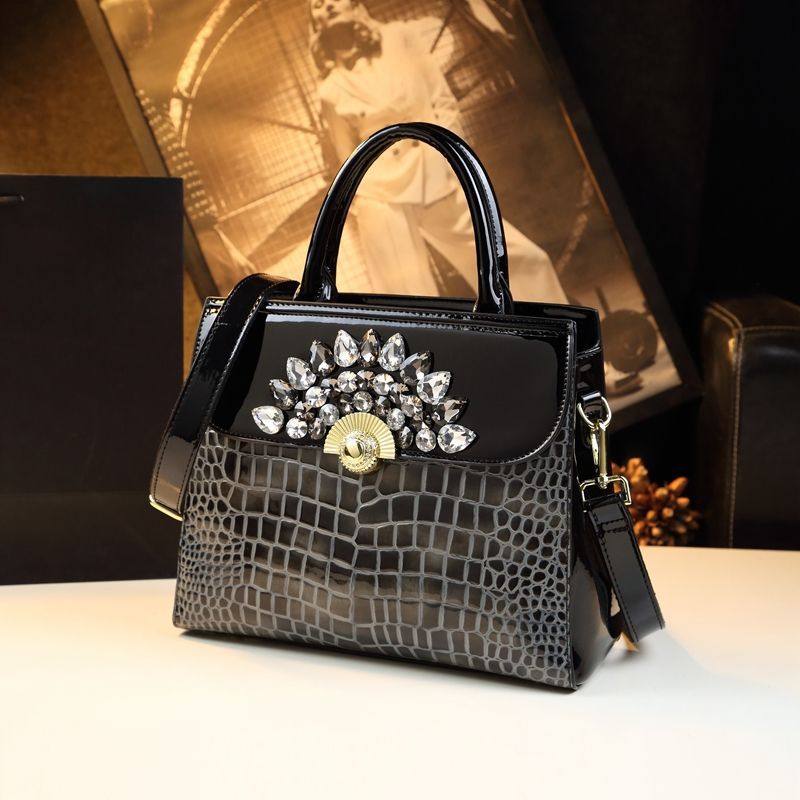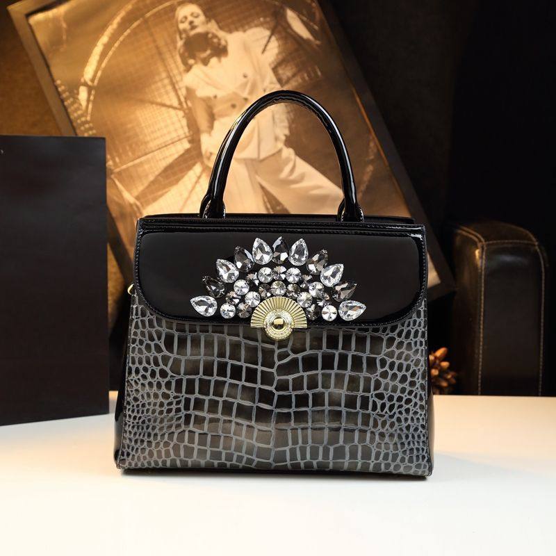2025高档高级感绣钻真皮妈妈包新款时尚大气中年女士包包手提包女