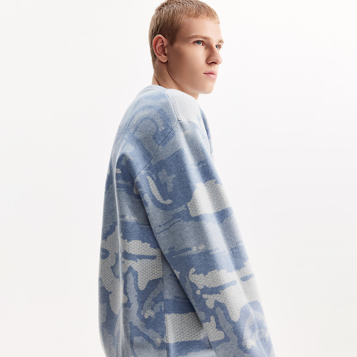 森马毛衫男冬季满版提花针织衫撞色毛衣宽松套头衫百搭提花潮-TK