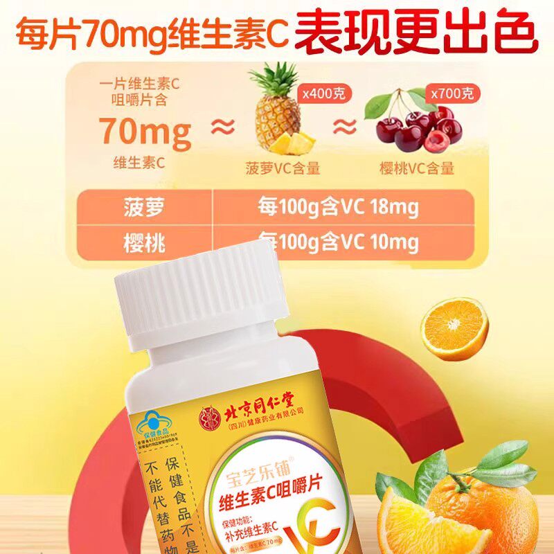 北京同仁堂vc片维生素c儿童非泡腾片天然咀嚼片正品官方旗舰店