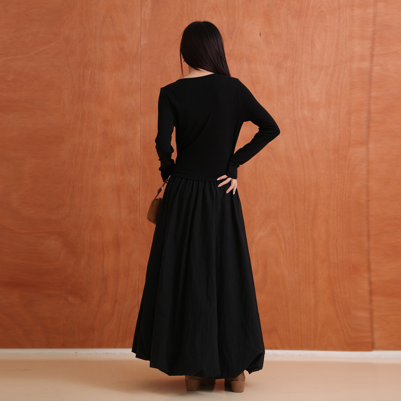 COCOBELLA简约气质黑色收腰极简风连衣裙女优雅短袖长裙FR3033-2