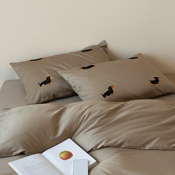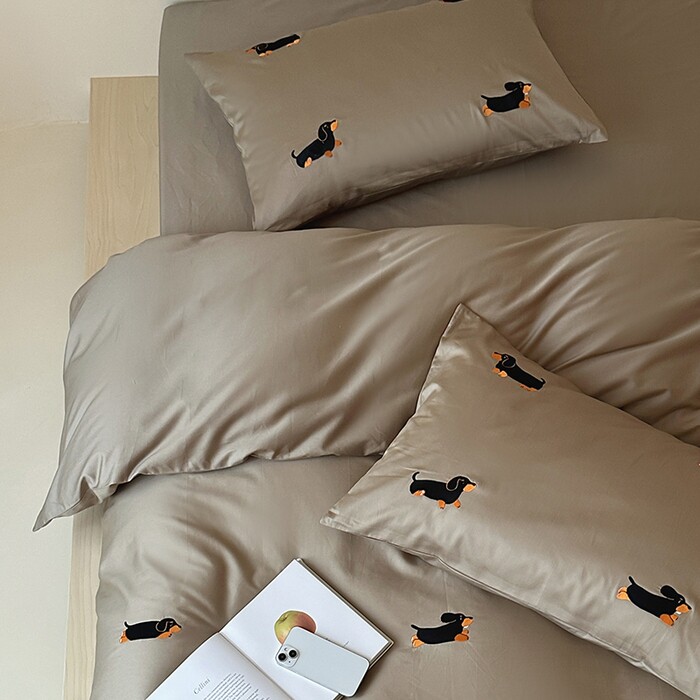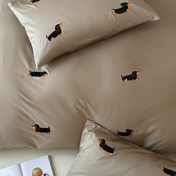 轻奢居家50s长绒棉全棉纯棉四件套热款卡通小狗刺绣简约绣花套件