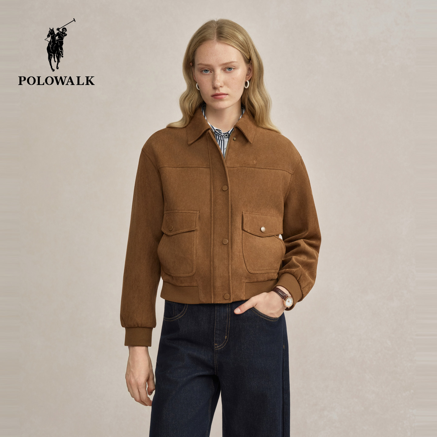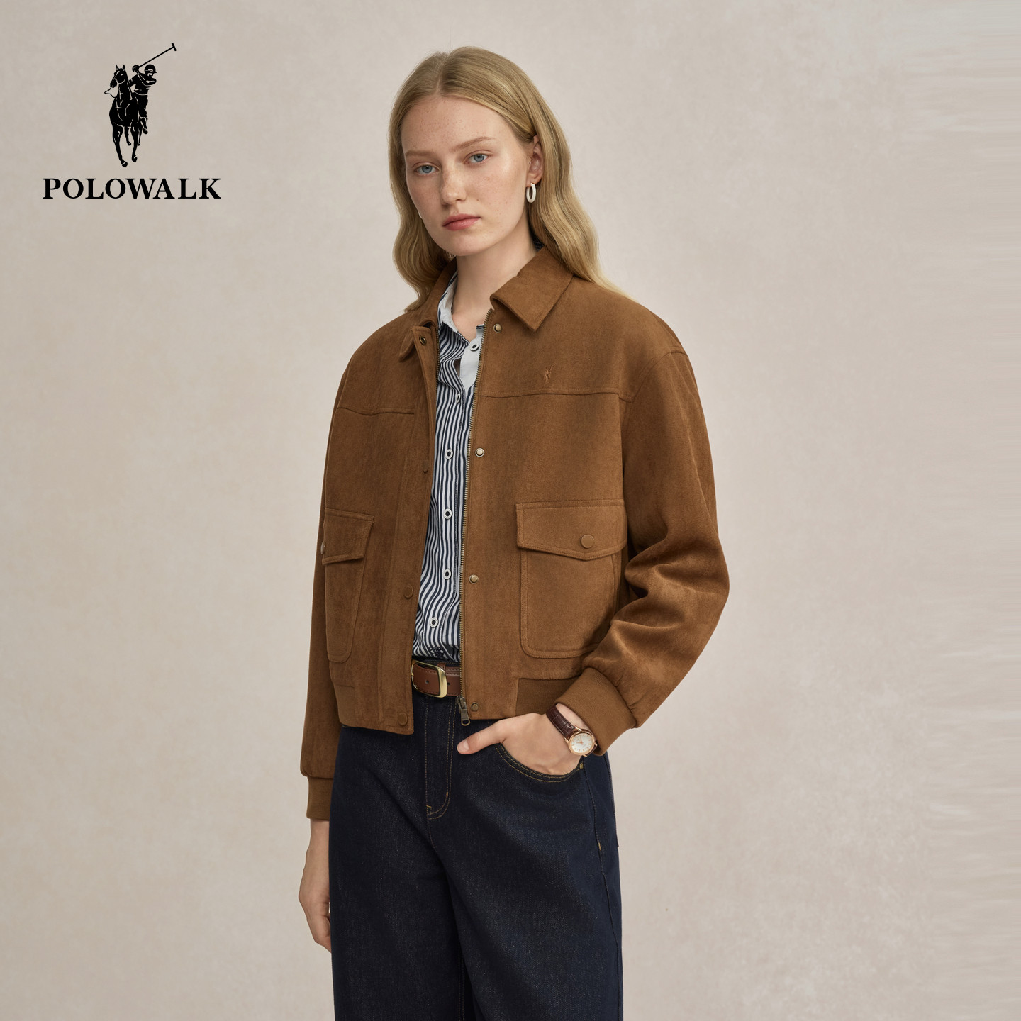 POLOWALK女装2026春季新款女士外套工装风短款夹克休闲时尚女装