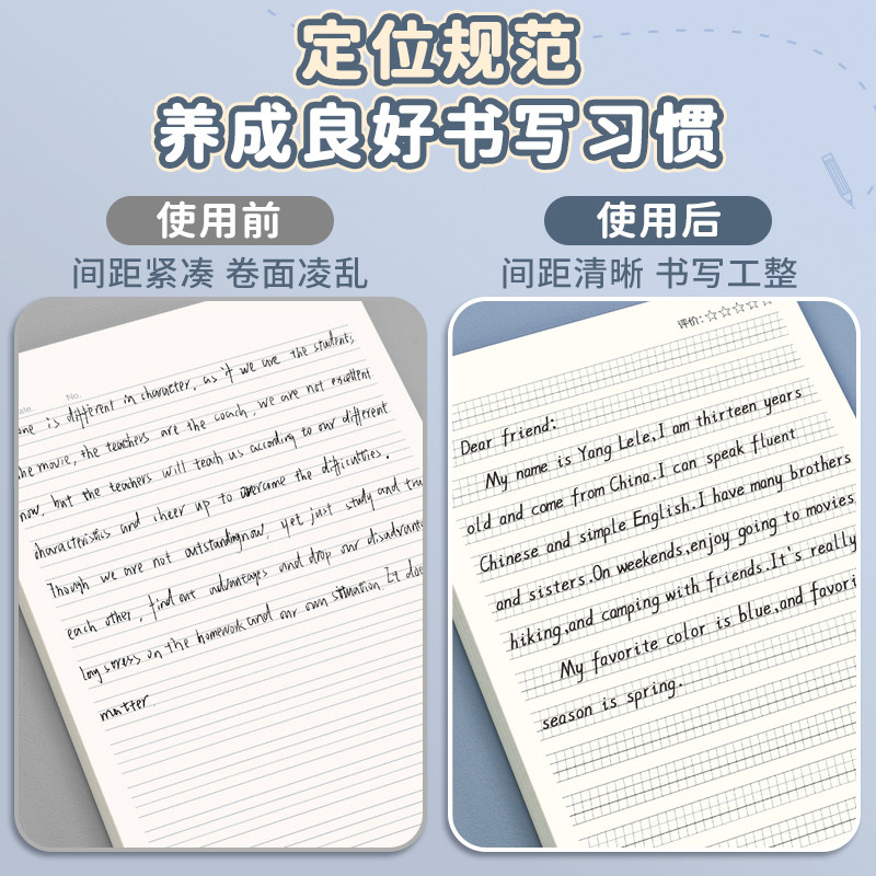 16k牛皮英语定位本小学生英语练习定位书写纸初中生专用加厚单词本学习衡水体斜格四线三格定位英语作业本子