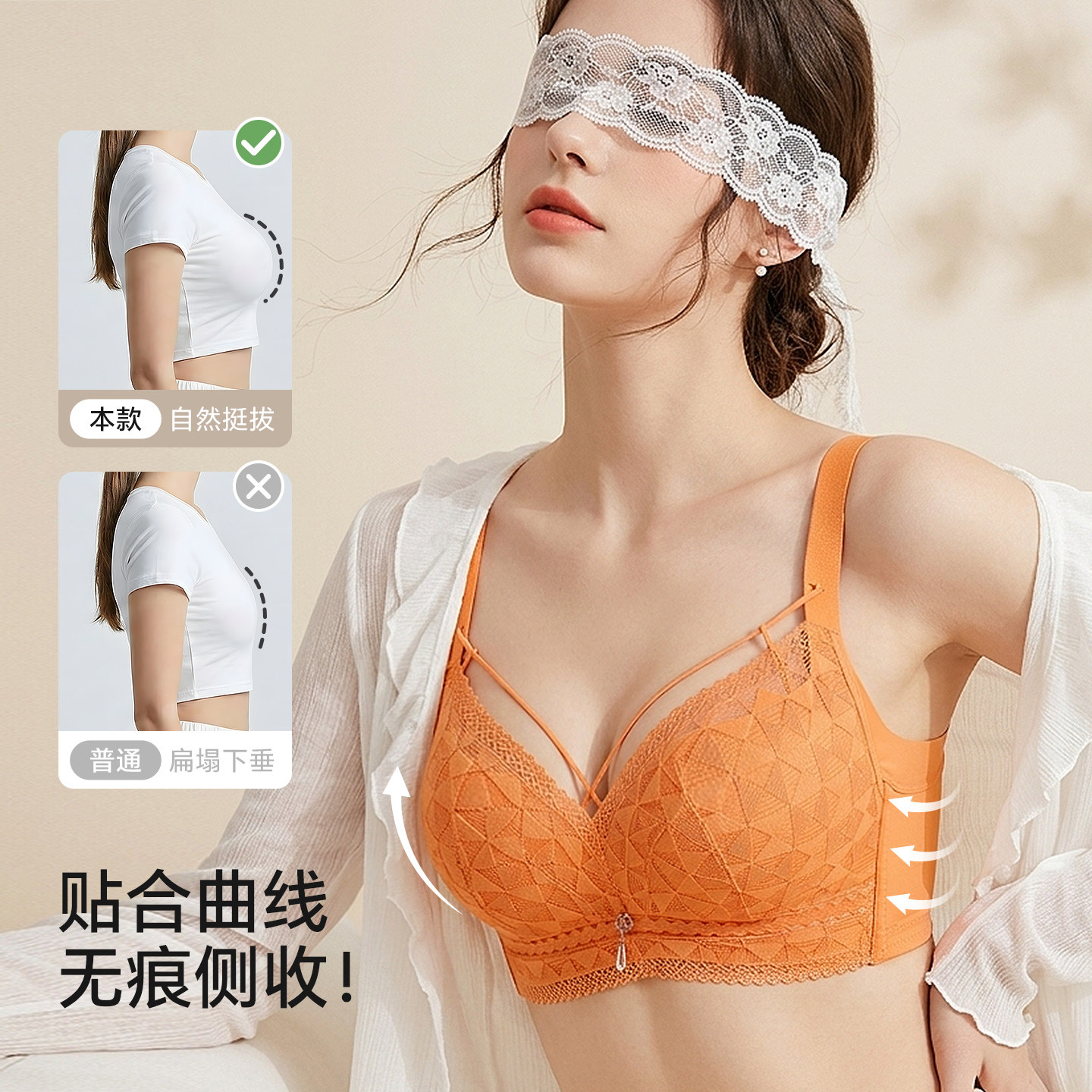 润微提拉内衣女大胸显小无痕提拉防下垂聚拢收副乳胸罩爆款文胸