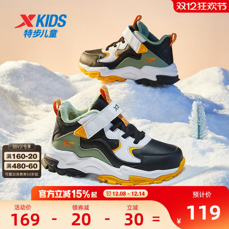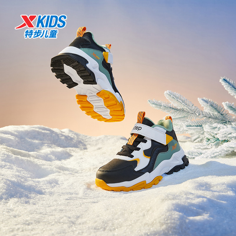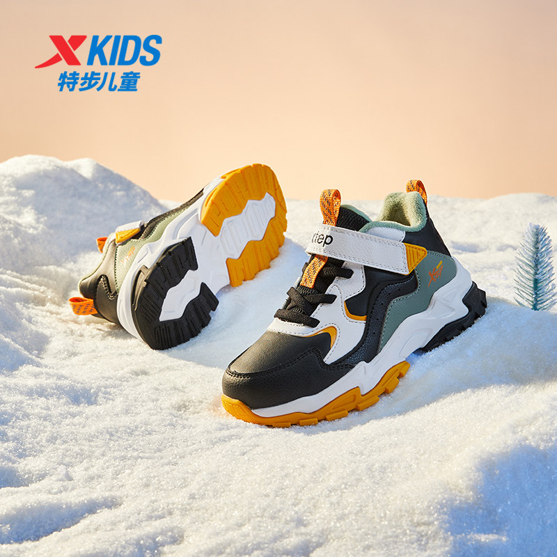 川尘3|鸿星尔克童鞋冬季加绒男中大童鞋子保暖加厚二棉休闲运动鞋