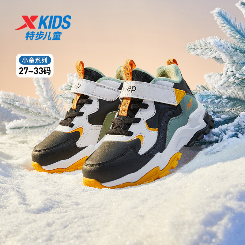 特步童鞋高帮儿童棉鞋男童加绒冬季加厚二棉保暖大棉休闲运动鞋子