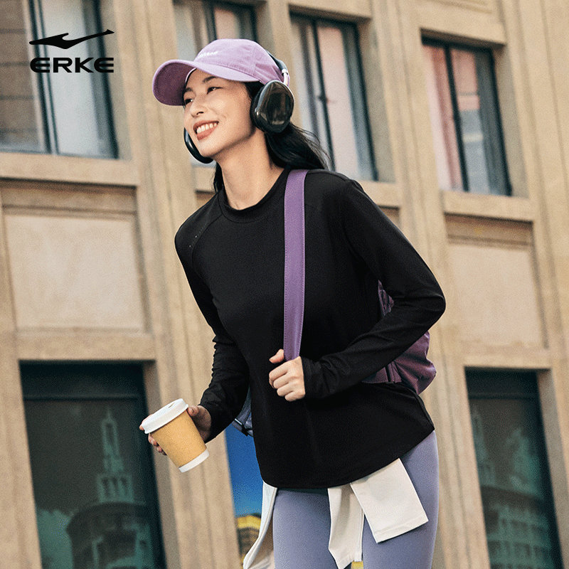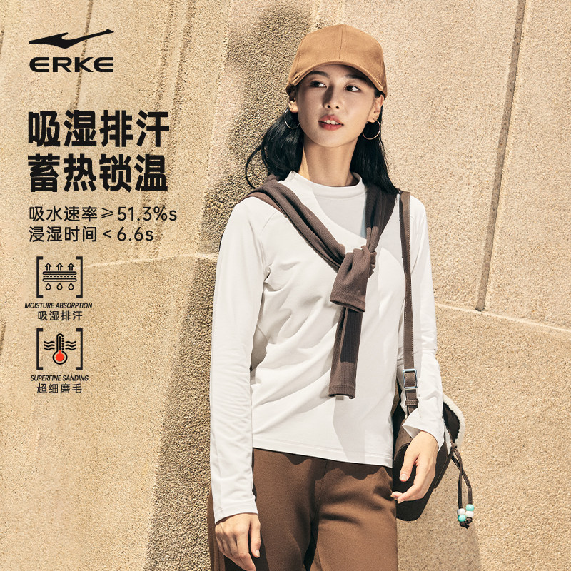鸿星尔克长袖t恤女2025冬季新款女士加厚跑步修身运动服加绒卫衣