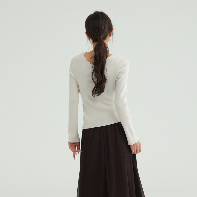 三福长袖上衣2025新款秋季圆领修身针织衫简约纯色内搭打底衫女装