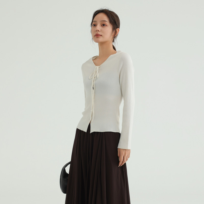 AIRIQI商场同款25秋新款慵懒风氛围感修身系带针织开衫AH53KS072