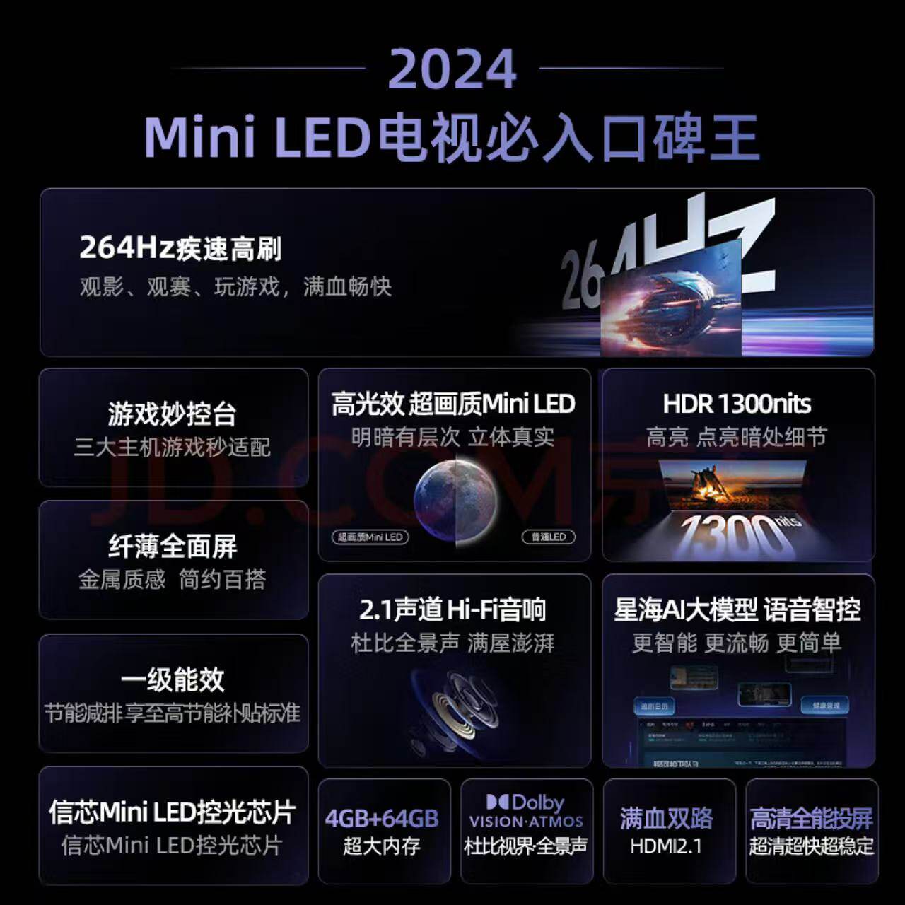 海信电视85E5N 85英寸Mini LED 超薄电视机液晶家用
