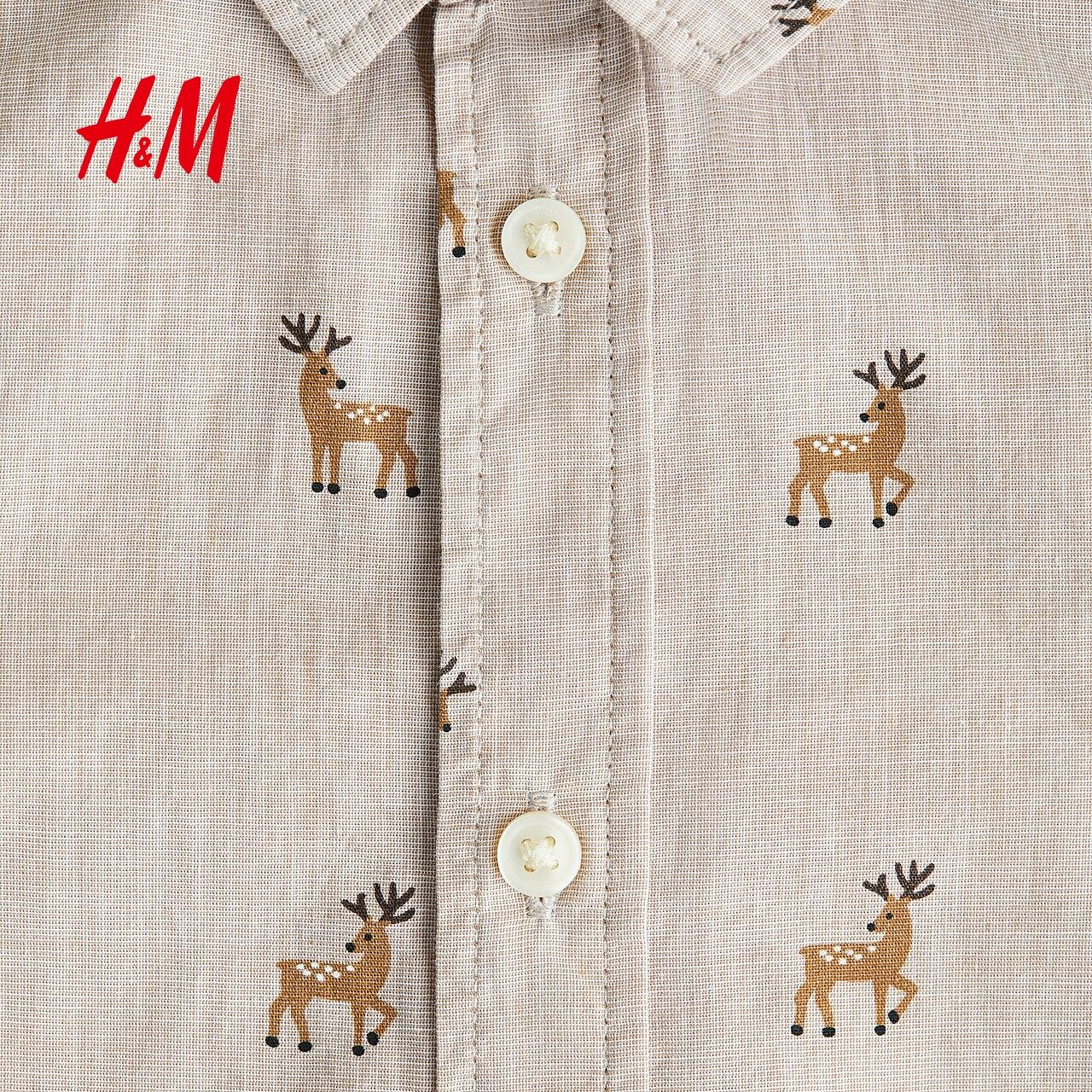 HM童装儿童男童衬衫2025冬季新款圣诞印花内搭长袖衬衣1301973