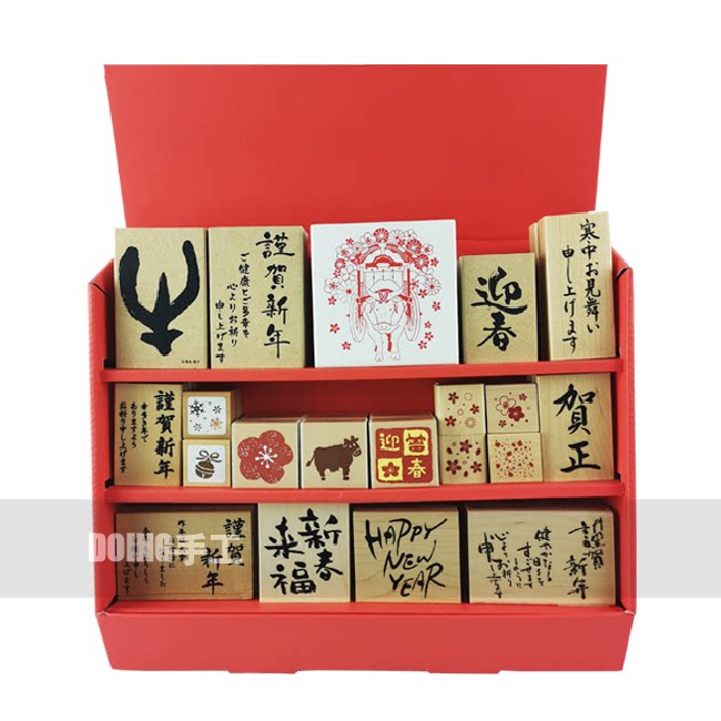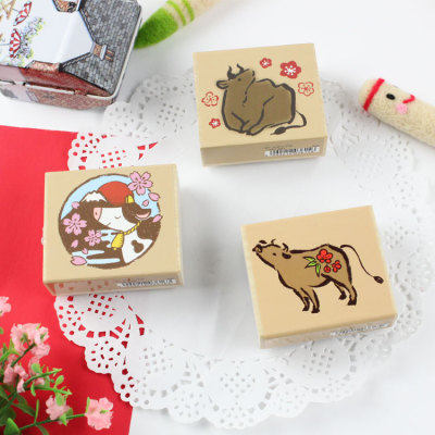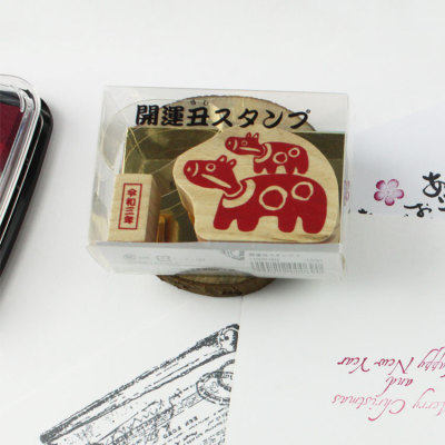 KODOMO NO KAO童颜章木头印章生肖丑牛新年贺卡可爱松竹梅樱花