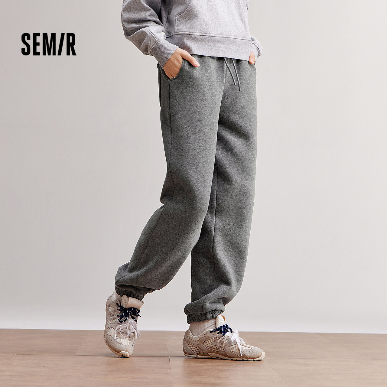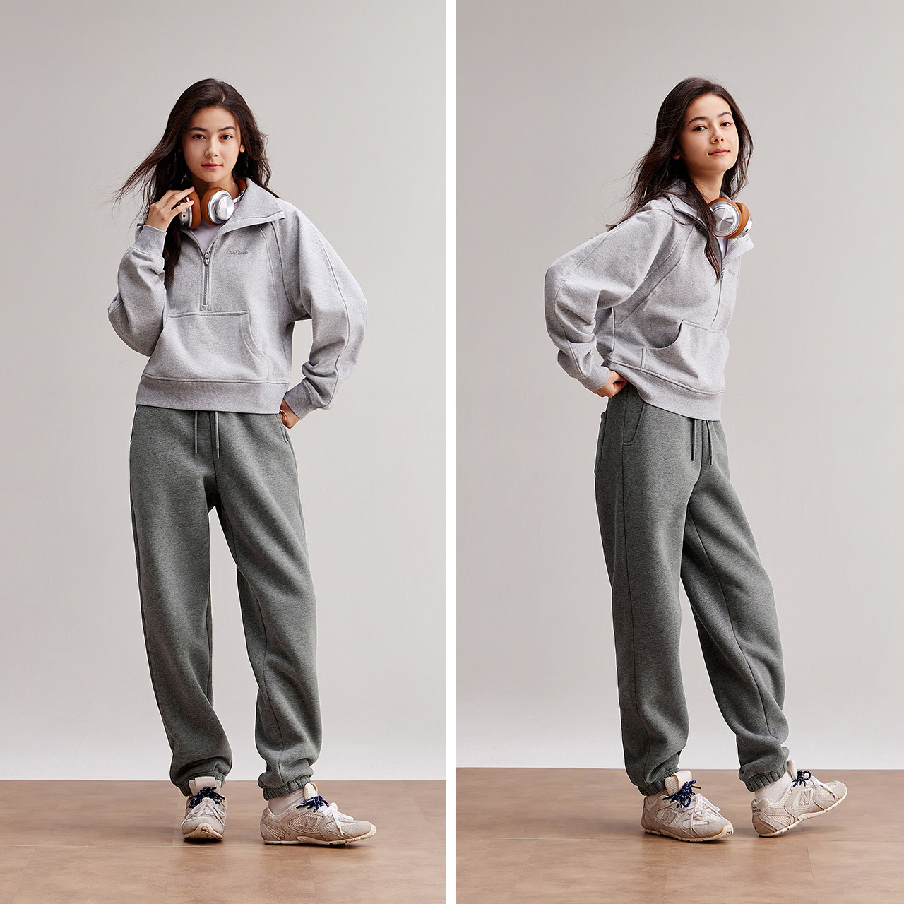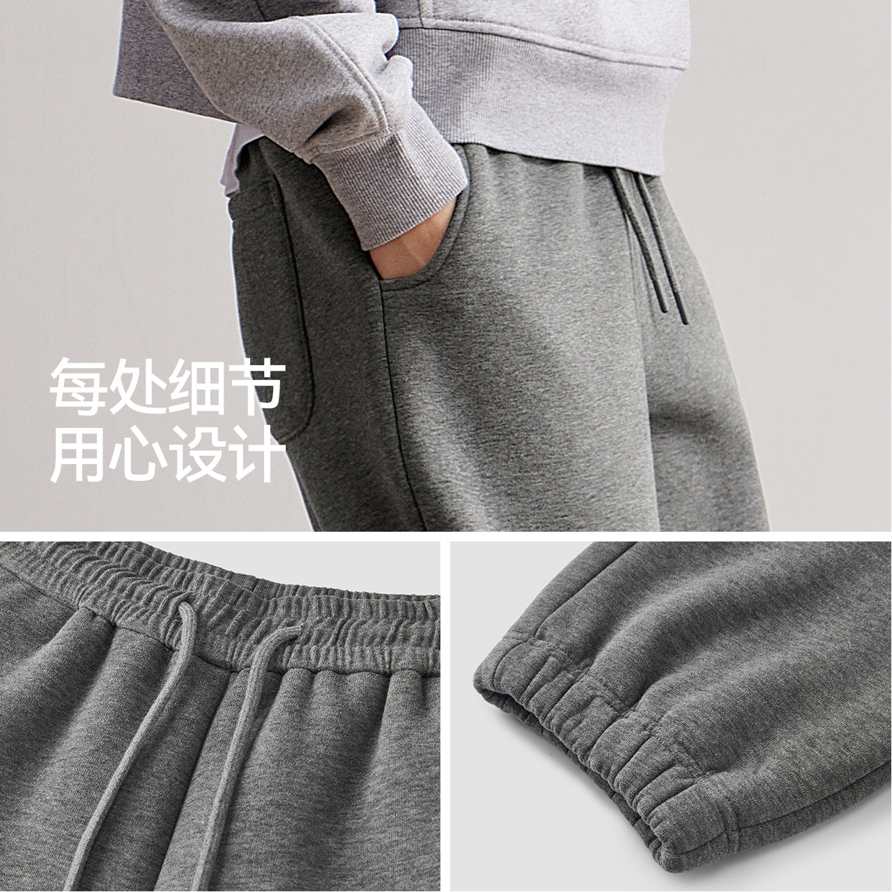 森马休闲裤女加绒加厚裤子保暖长裤2024冬新款宽松卫裤灰色运动裤