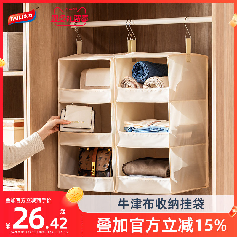 太力衣柜挂式收纳袋衣物整理盒布艺宿舍分层挂袋家用内衣裤收纳袋